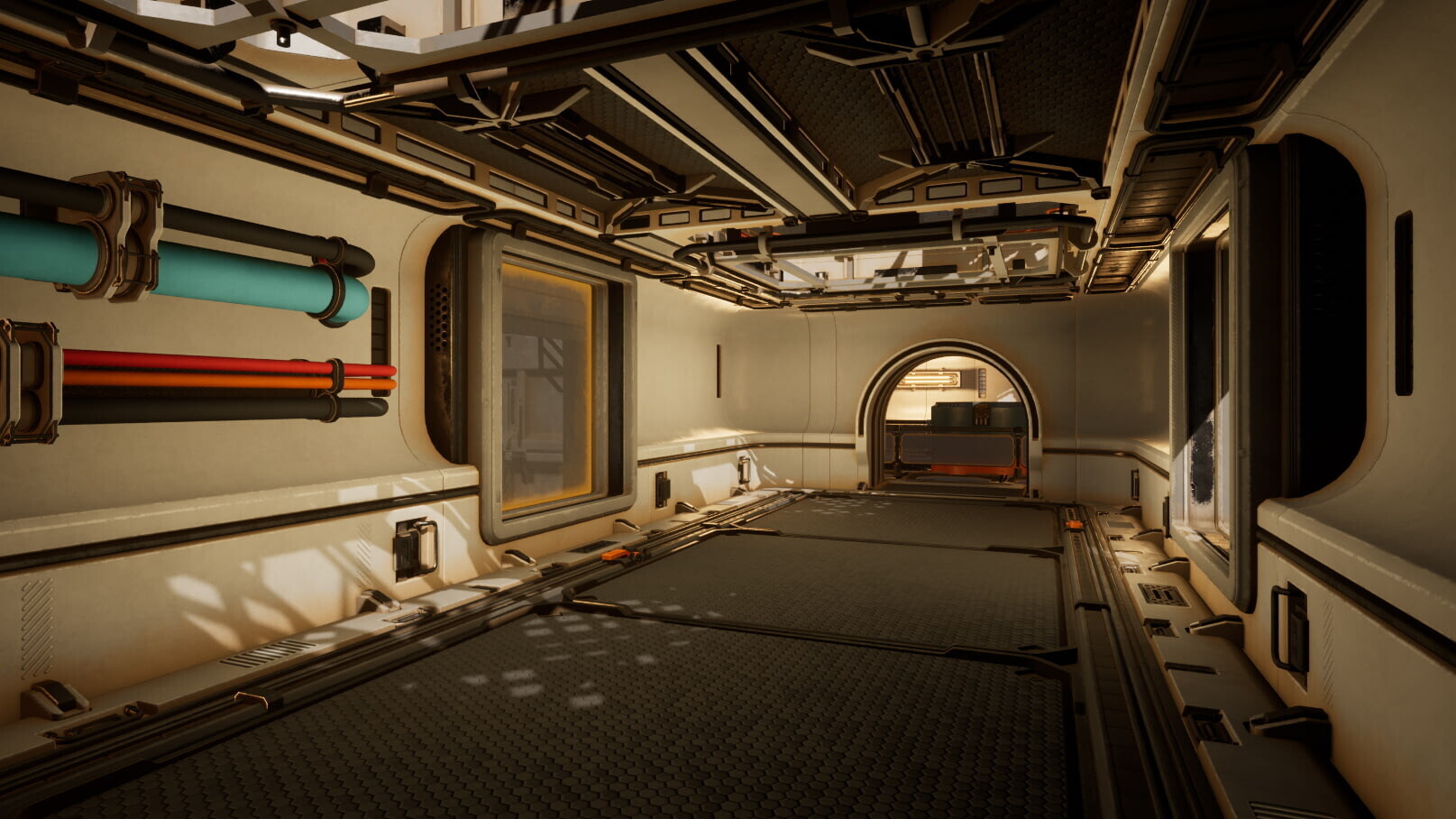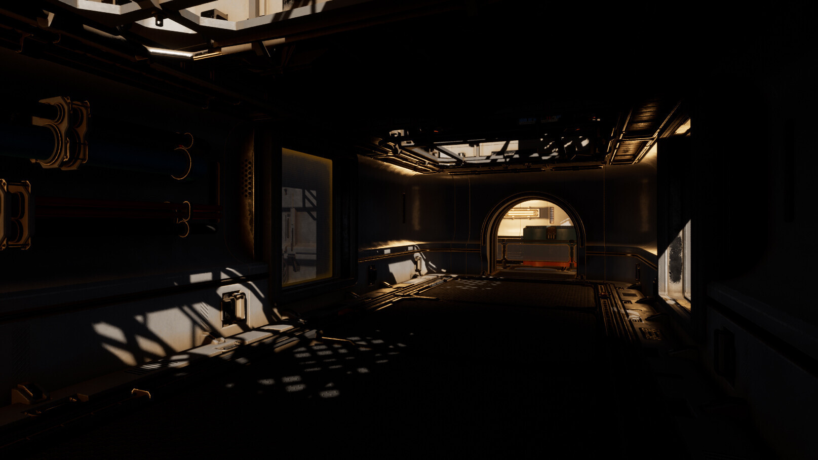 Вот пример на картинке ниже. За стенами базы ясный солнечный день, в коридоре несколько окон, через которые внутрь попадает свет. Но почему так темно? (За это и спасибо Distance Fields-ам для мешей, кстати, тут без шуток)