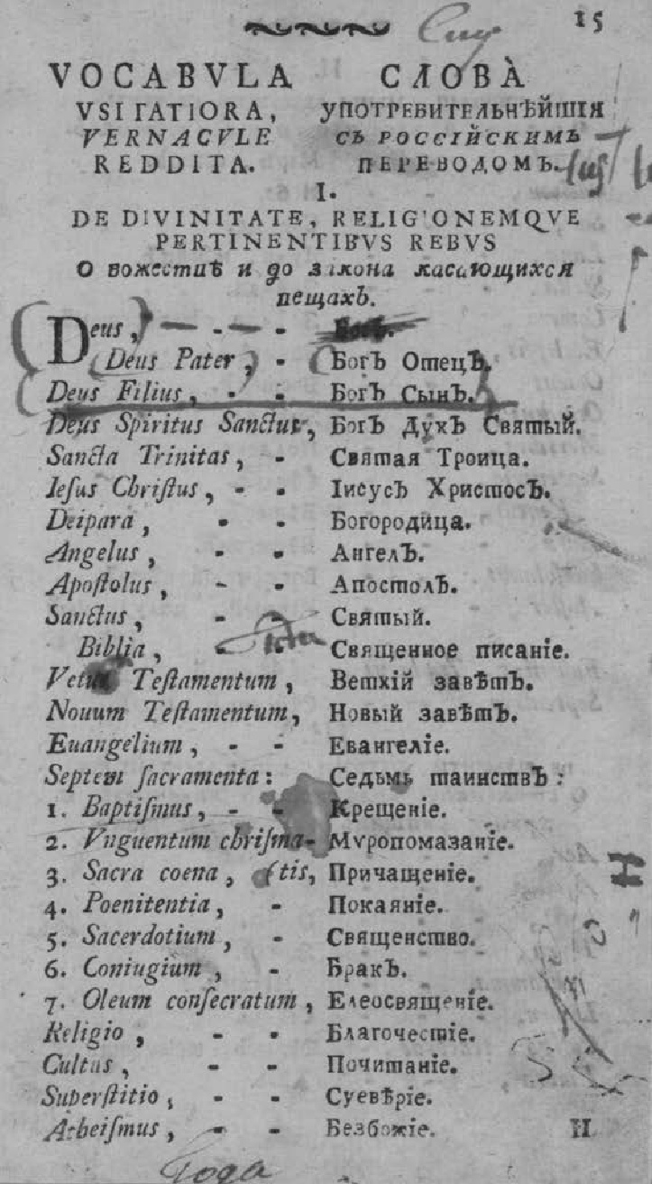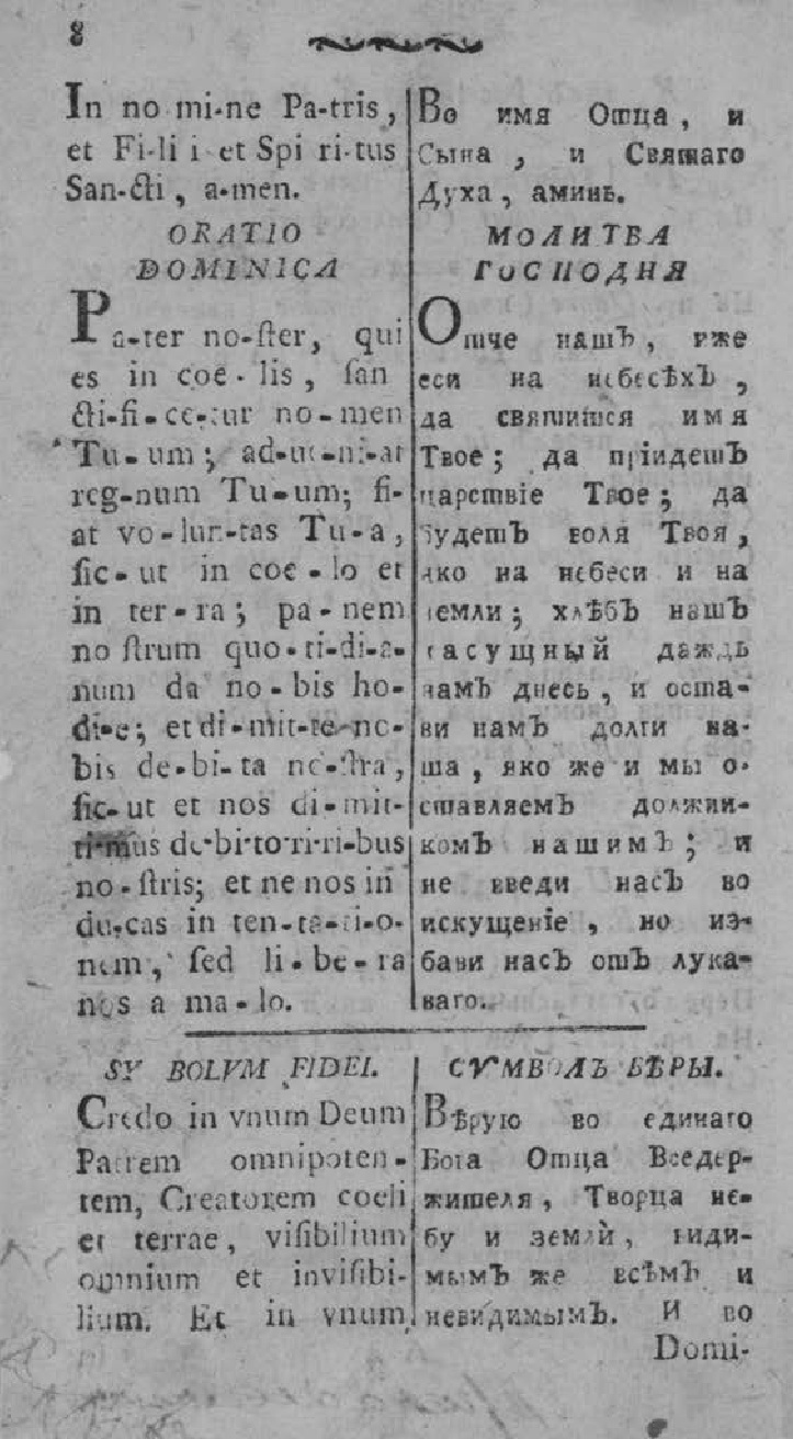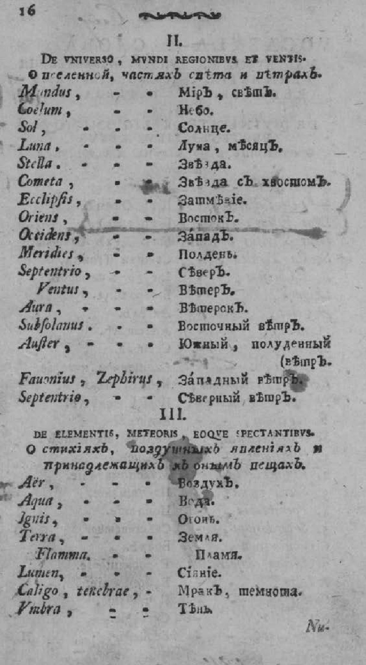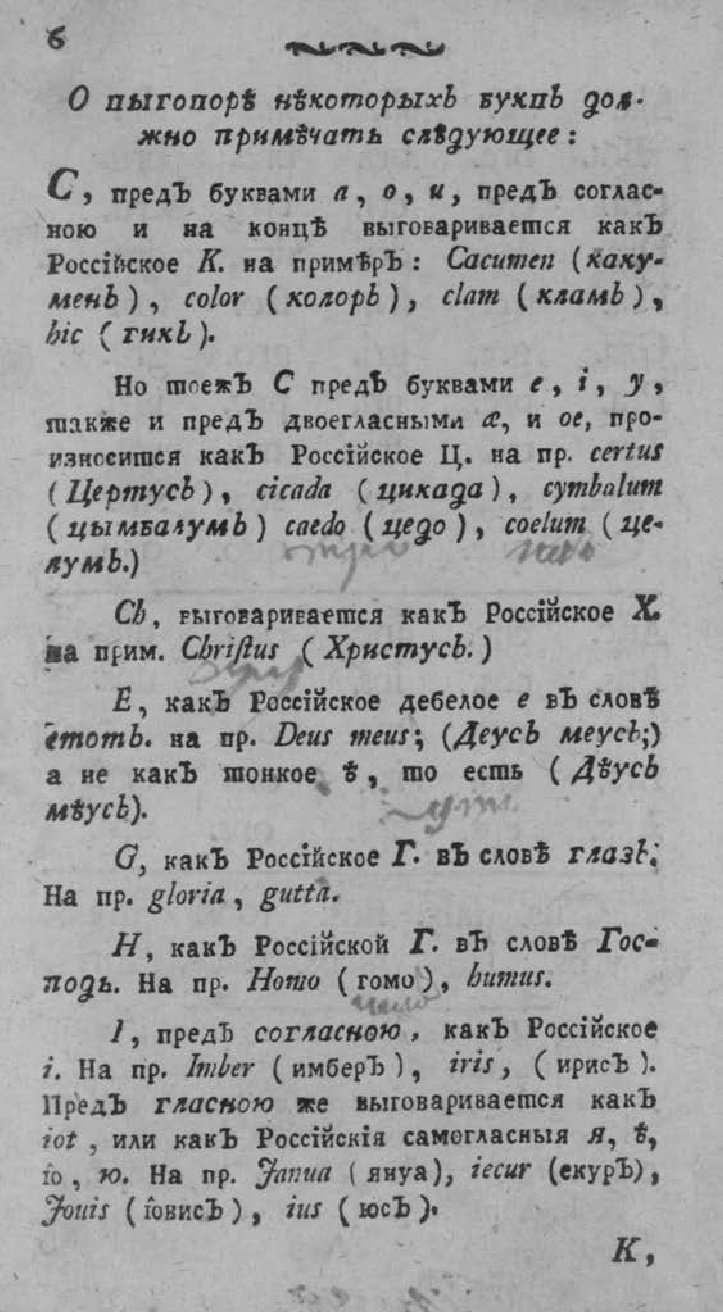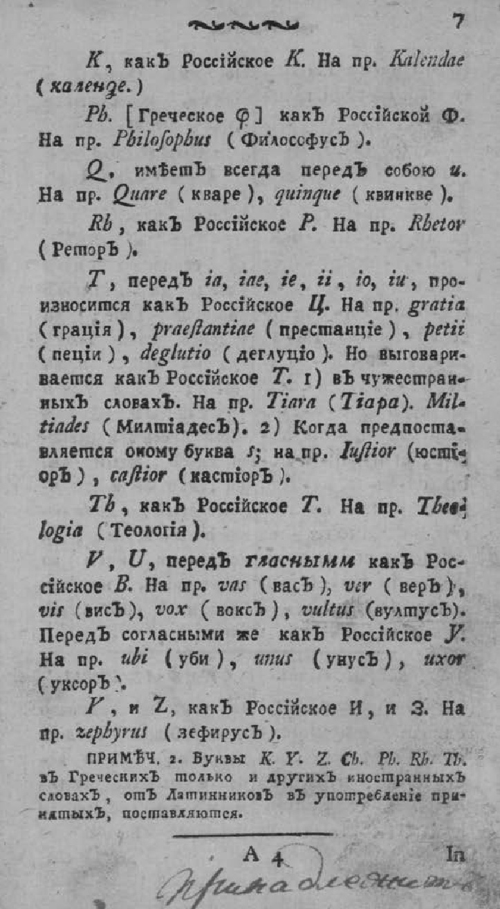 "Латинской Букварь въ пользу обучающагося въ Россiйскихъ училищахъ юношества" третично изданный Н.Б.К. Печатан в Университетской Типографии у Н. Новикова 1784 года, Сент.