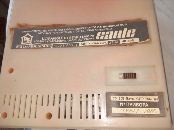 Латвийская ССР. 1985 года. Домашний аппарат УФ + ИК облучения!