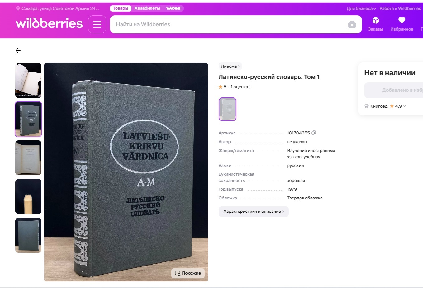 Помните шутку о том, как кто-то по ошибке вместо латыни два месяца учил латышский? Видимо, это не очень-то и шутка. Wildberries (или конкретный продавец?) подтверждает. Как видно, словарь уже купили - вот только как латышский или как латинский? В любом случае, судя по тому, что оценка - 5, товар подошёл!