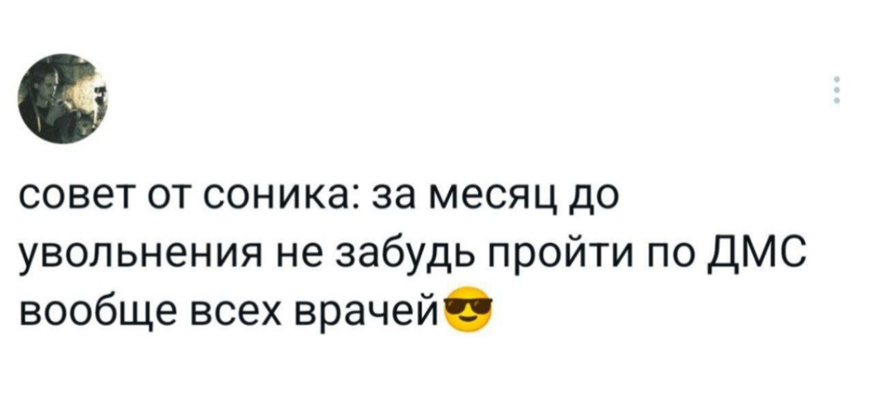 422 HaronUrShanaby Лайфхак для тех, кого увольняют! 28 дней назад Короткопост Юмор Лайфхак Увольнение Работа ДМС Врачи Месяц Сонник 28 16 5 1 Ещё 0