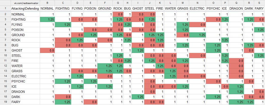 Что касается атаки других покемонов, то тут надо смотреть на тип атаки покемона (а не его тип) и на тип покемона, который стоит в защите (тут уже тип покемона).