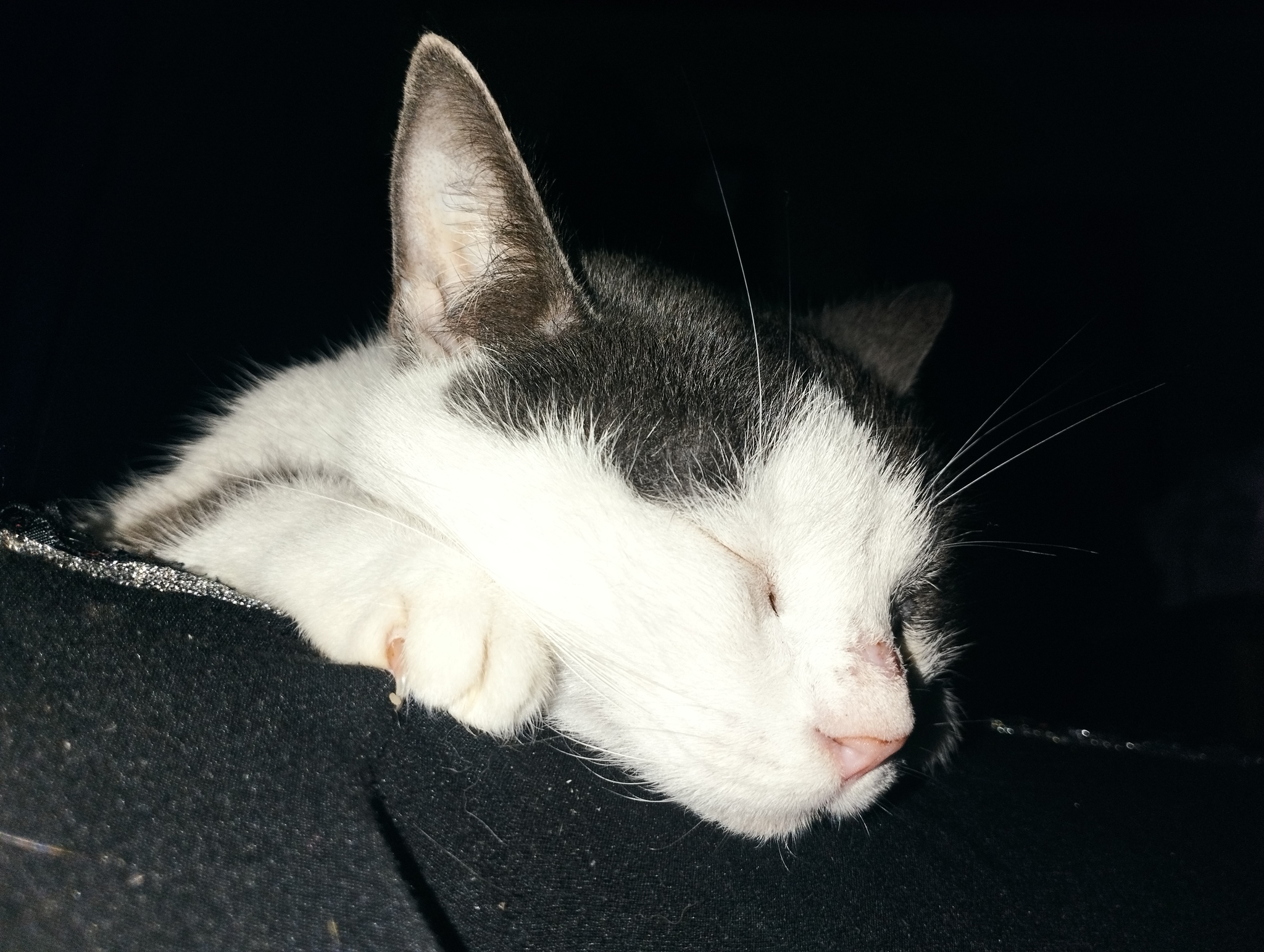 Лейла, она же Ляля. Слепенькая, не старая,, года 4, подобранец. Путешествует со мной и со всей зверобандой. Овчарку не любит.