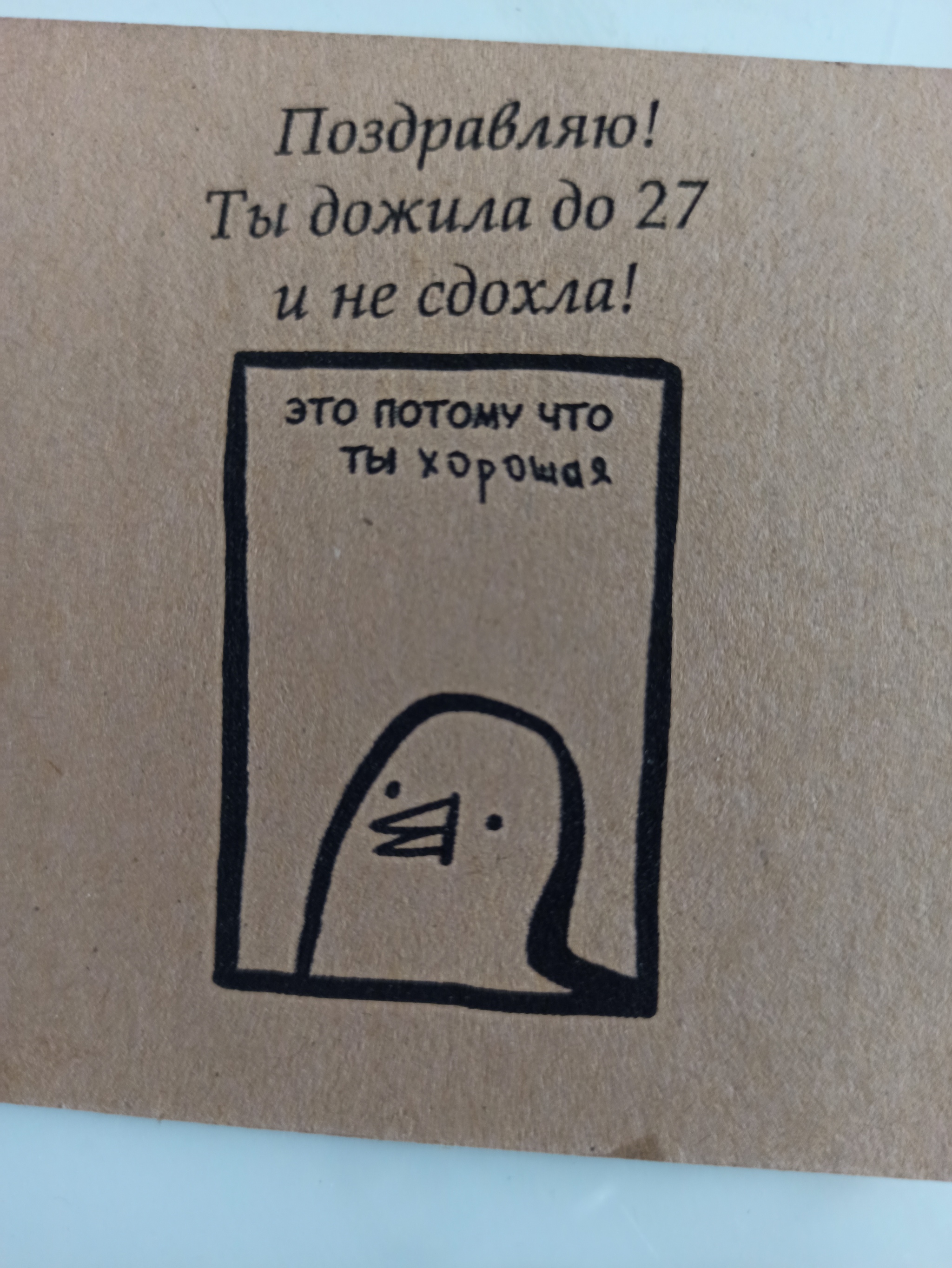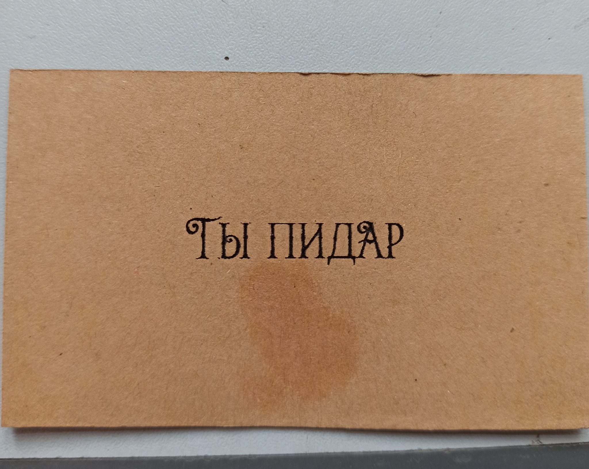 Потом возникла идея сделать маленькую открытку товарищу. Случайно попал каплей воды, в итоге так и осталось пятно. Дарилась она в красивом конверте с сургучной печатью