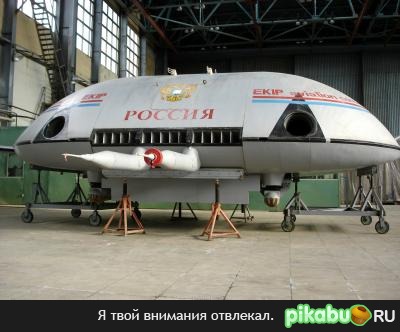 "Пока наблюдали за процессом строительства обычных самолетов, подобрались к дальнему углу ангара. А там, не то, чтоб был припрятан, но совсем незаметно стоял некий девайс, в простонародье названный летающей тарелкой. К сожалению, режимность объекта позволяет сделать кадр только фронтальной части изделия. На мои вопросы отвечают скупо. На вопрос о скорости, взлетной массе ответы, я, в принципе, еще до поездки нашел в интернете. Сказали только, что КПД двигателей данного девайса - в 5 раз выше, чем, у обычных авиционных (гражданских); принцип полета, если "объяснять на пальцах" - как у камня, который мы запускаем по воде - он летит и отталкивается от поверхности воды (только в случае с данным проектом - отталкивается он от верхнего слоя атмосферы); вместимость - если увеличить размеры, то "можно хоть 2 тыщи человек перевозить за раз"; летные испытания проводились и не раз; Россия на данном этапе не в состоянии завершить проект (читай - запустить в серию), американцы, китайцы и прочие предлагают совместные проекты, но на унизительных условиях ("хотят нахаляву получить ноухау"), поэтому никаких совместных проектов нет (хотя, америкосы очень давят, готовы на многое - но все сводится к тому, что "отдавайте нам проект, всю тех.документацию - мы организуем сборку и доведение до ума своими силами, а часть готовых изделий возвращаем" - что-то в этом духе)." +ссылка http://www.ekip-aviation-concern.com/index-r.htm