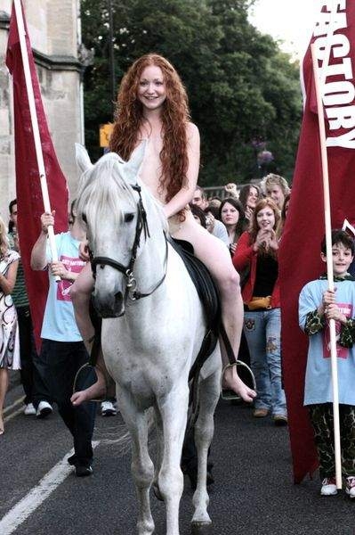 Но наиболее отчаянные из претенденток, невзирая на цвет своей шевелюры, по примеру легендарной графини, садятся на лошадей и совершают, в подражание героине, поездки в обнаженном виде.