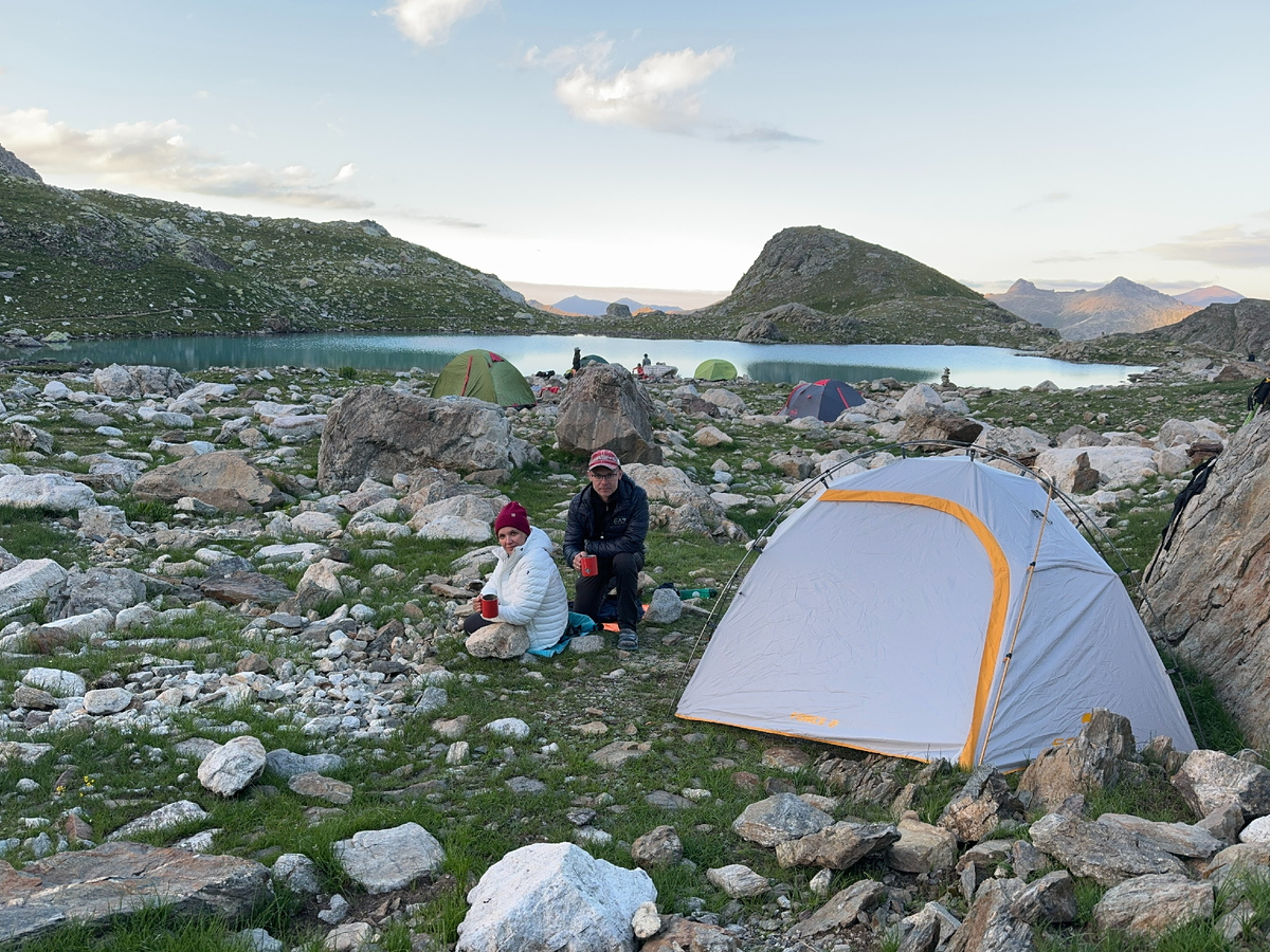Когда мы пришли, там уже стояли палаток пять. Нашу небольшую двухместку удобно прислонили к огромному валуну, подальше от соседей. Из камней сделали столик, стульчики, зажгли горелку, сотворили походный ужин из сублиматов. Но сначала вволю напились. Никогда такого не было: пьешь, долго, с чувством, холодную вкусную воду, а ощущение – только губы смочил. Литра по два точно уговорили.
