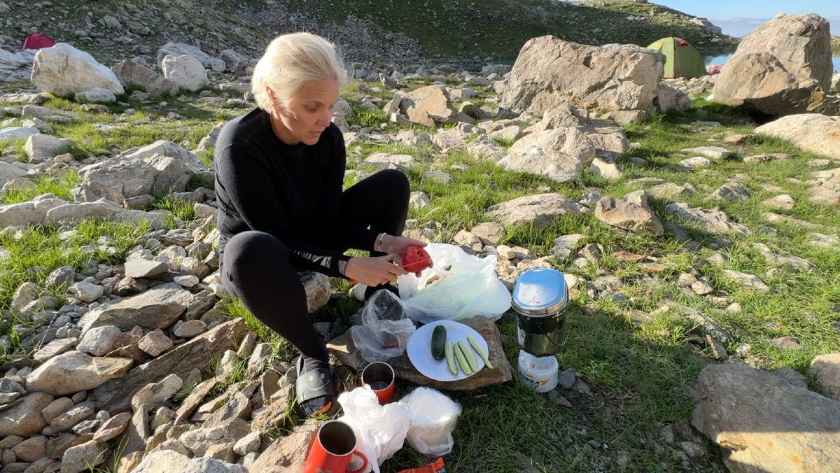 На ужин я взяла попробовать японский сублимированный мисо-суп – невесомые крохотные пакетики с полладошки, довольно вкусные, картофельное пюре, овощи, для нетравоядных – рыбка. Туры дикие прибежали, рядом попрыгали, но близко не подходили: двое взрослых и трое малышей. Сидишь, как в кино: горы, снег, озера, и эти винторогие скачут. То силуэтами на фоне неба, то поближе подойдут. Было бы чем, угостили бы, но я не знаю, что едят туры.