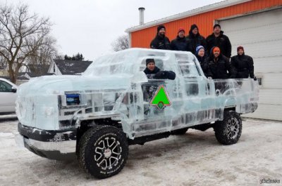 Этот необычный автомобиль был построен на базе Chevrolet Silverado 2500HD 2005 года выпуска сотрудниками трех канадских компаний, которым пришлось изрядно потрудиться не только над воссозданием облика пикапа, но и над решением ряда технических проблем. Например, чтобы продлить срок службы ледяного корпуса, в конструкцию были добавлены вентиляторы, отводящие горячий воздух от двигателя. Всего было изготовлено три ледяных корпуса: один - прототип, второй - для съемок видеоролика, третий - для использования в рекламных акциях и рекордном автопробеге на одну милю. Автомобиль весил 6803 кг, почти 5000 из которых приходились на долю льда.