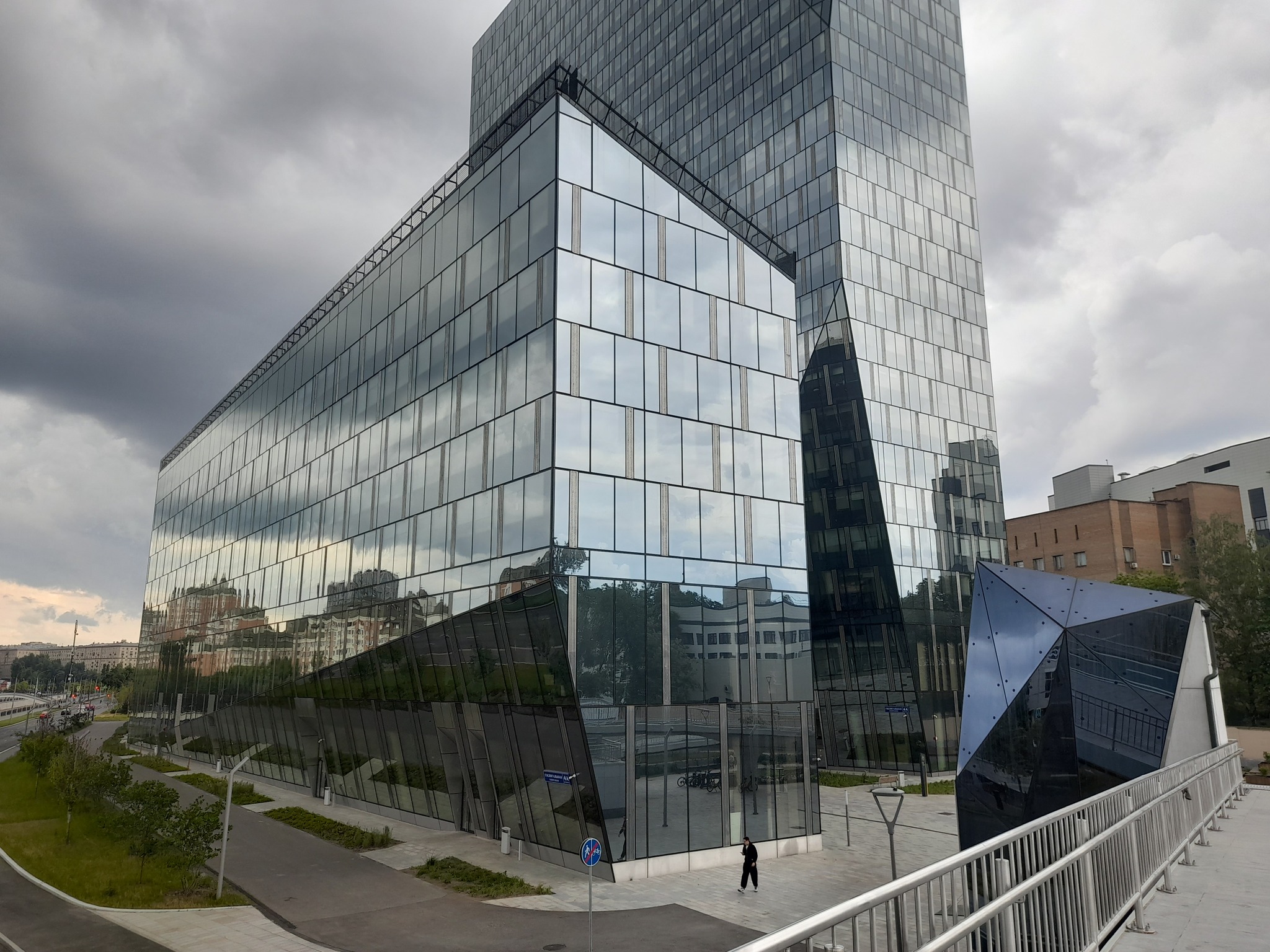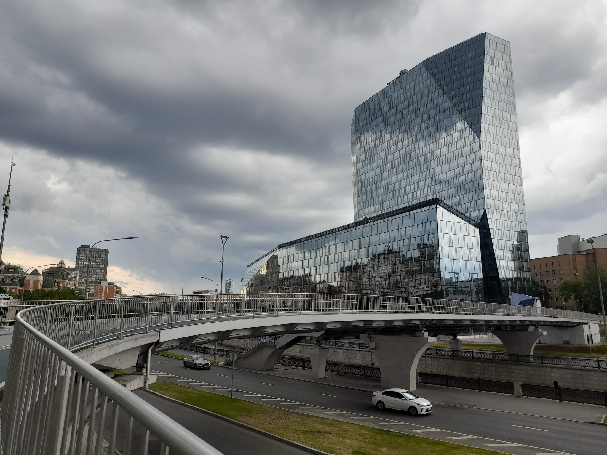 Для связи нового комплекса с новой станцией Большой Кольцевой Линии "Электрозаводская" построили пешеходный мост. Он стал третьим из Электрозаводских мостов - есть ещё автомобильный и железнодорожный.