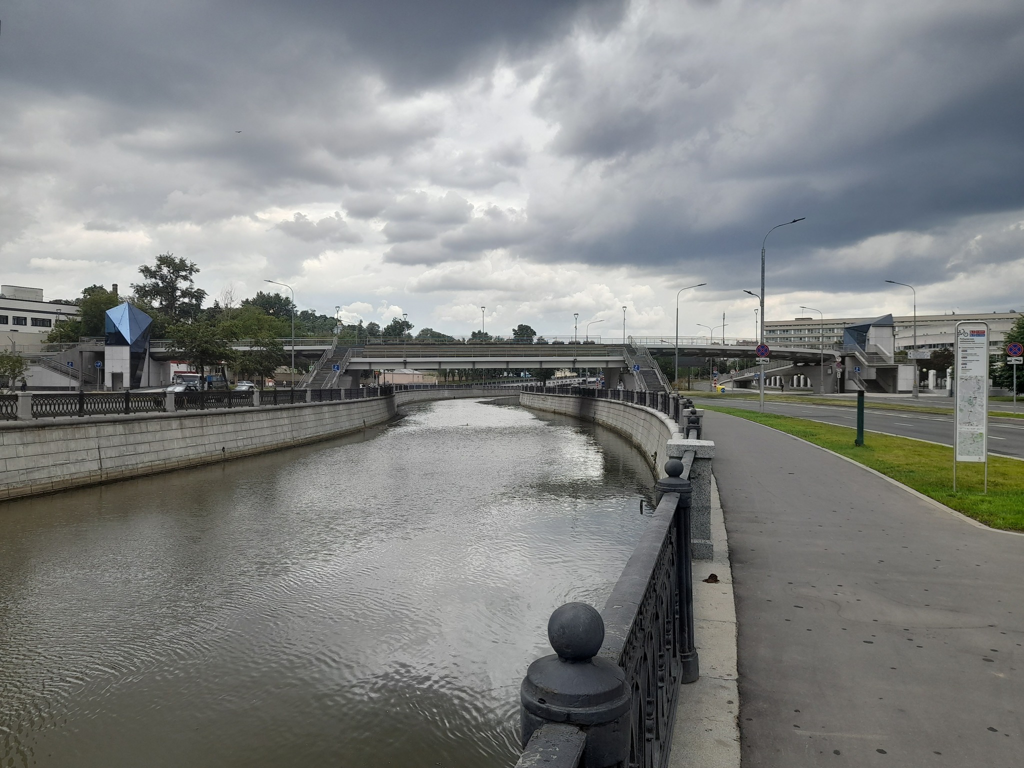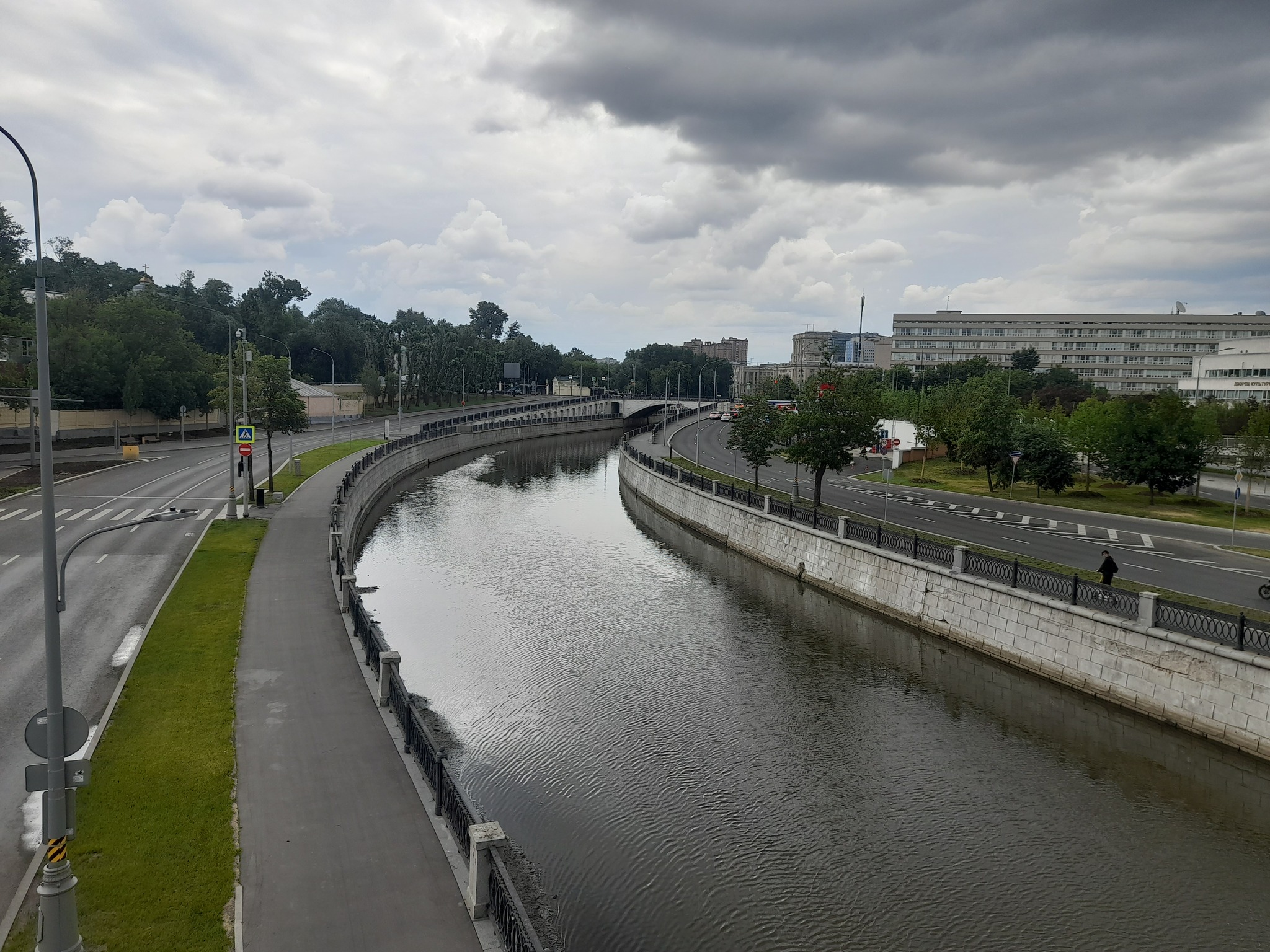В пятницу 13го июня я решил прогуляться вдоль Яузы вверх по течению от Лефортовского моста до Электрозаводского. Итак, спускаемся к реке в районе Лефортовского моста на Головинскую набережную.