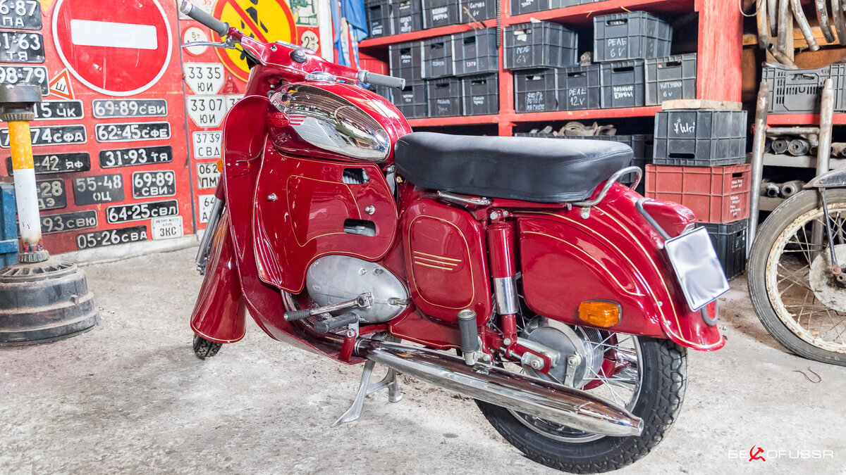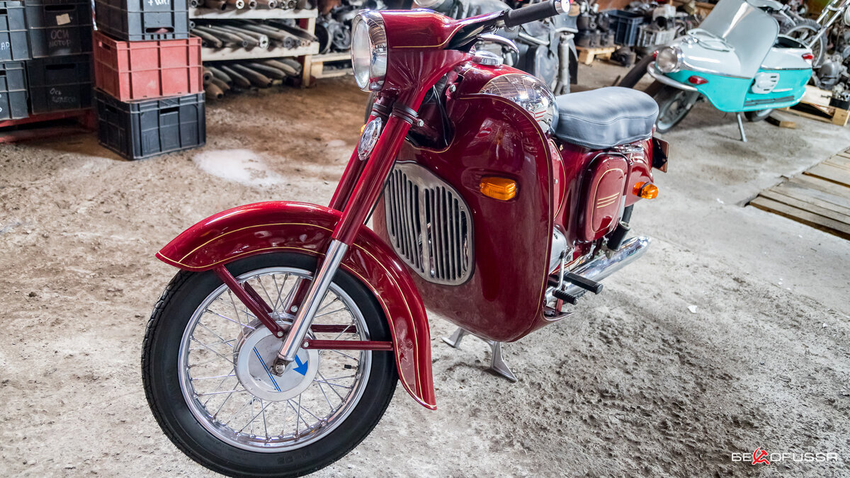 Восстановленный мотоцикл выпущен в 1966 году, в процессе реставрации он был полностью разобран, до последнего винтика, все детали заново покрашены и частично установлены новые оригинальные детали, приобретенные в Чехии.