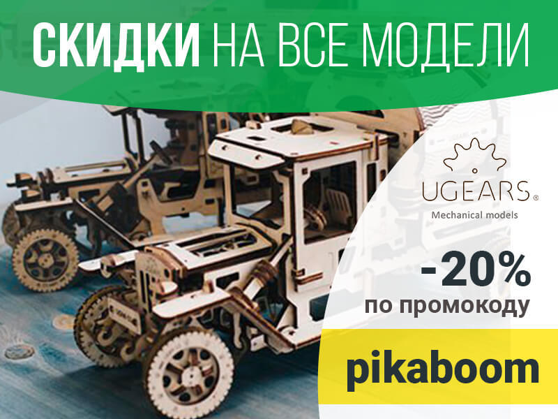 Всего за два с лишним года UGEARS стал конструктором с историей, которую через несколько лет будут знать не хуже, чем рассказы о появлении фастфуда McDonalds или автомобилей Ford. Купить историю и поставить себе на полку можно по промокоду pikaboom. По нему предоставляется скидка 20% на все модели из каталога официального дистрибьютора UGEARS в России.