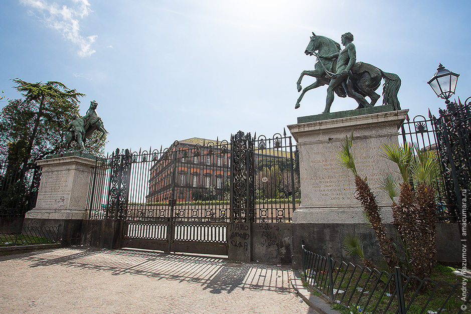 История коней некоторыми ниточками из клубка тянет в Неаполь. В 1844 гипсовые скульптуры в восточной части моста наконец-то заменили на бронзовые. Простояли они недолго, через два года Николай I подарил их королю обеих Сицилий за гостеприимство оказанное русской императрице во время путешествия по Италии. Заодно Клодта наградили Неаполитанским орденом. Когда кони переехали в Неаполь, местные газеты вышли с заголовками: "В Неаполе находится нынче три чуда: тело Спасителя, снятое со креста, покрытое прозрачной мраморной пеленой, "Снятие Спасителя со Креста" — картина Эспаньолетта, и бронзовые кони русского барона Клодта". Увидите, передавайте им пламенный привет из Питера.