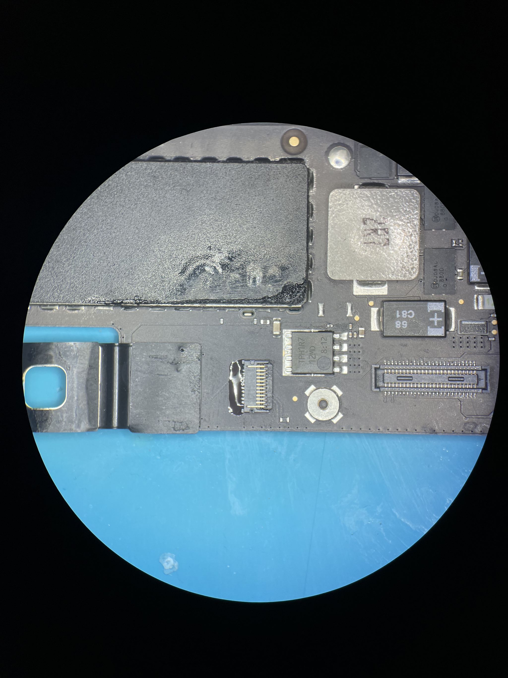 После замены разъема и удаления защитного скотча вокруг разъема видим подплавленную наклейку, похоже не лишним было бы снять её до начала работ. Другой такой у меня нет по этому поправим имеющуюся на сколько это возможно.