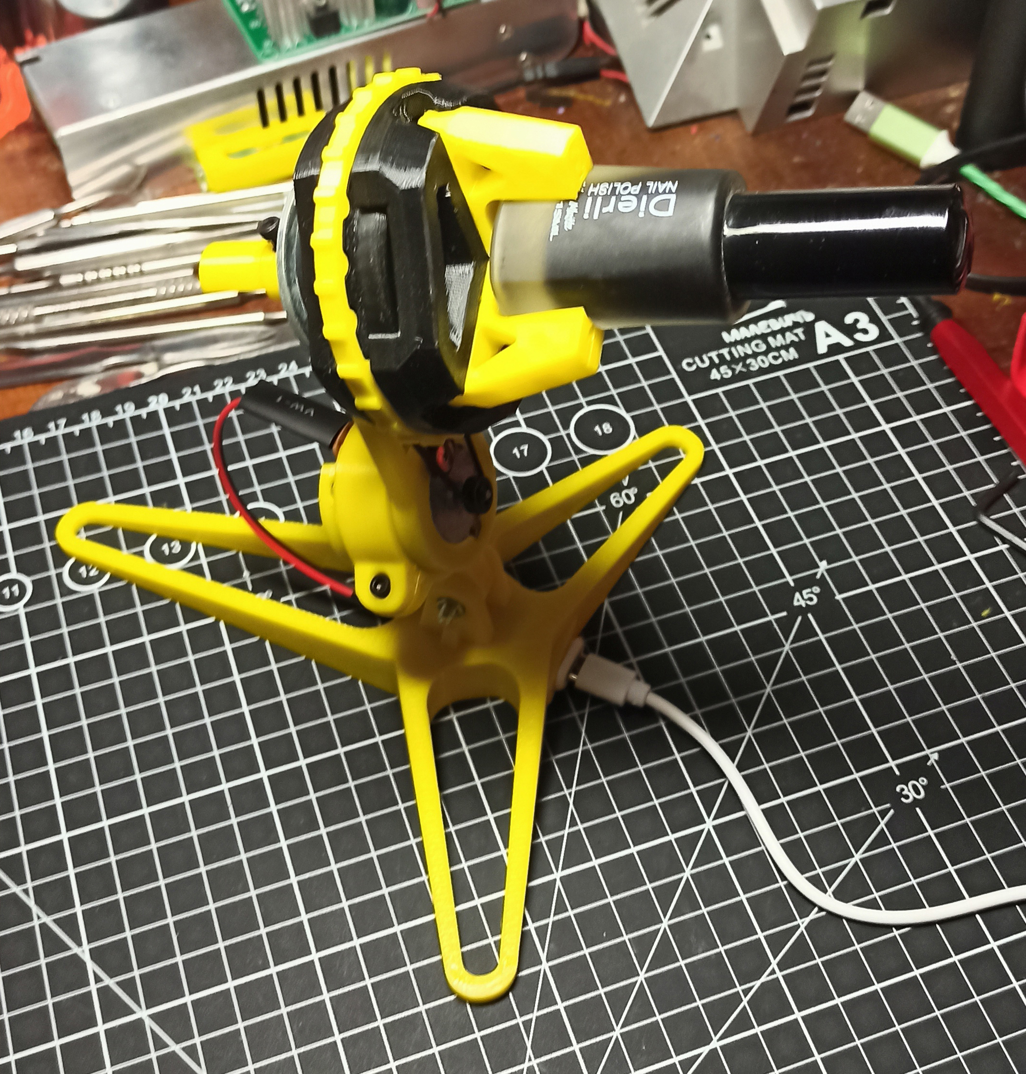 Ну и всё равно... Для столика слишком быстро. Хрен с ним. Возьмем на авито за 300 руб готовый. Мы не гордые. А мешалочку оформим в конструктивно законченный прибор.