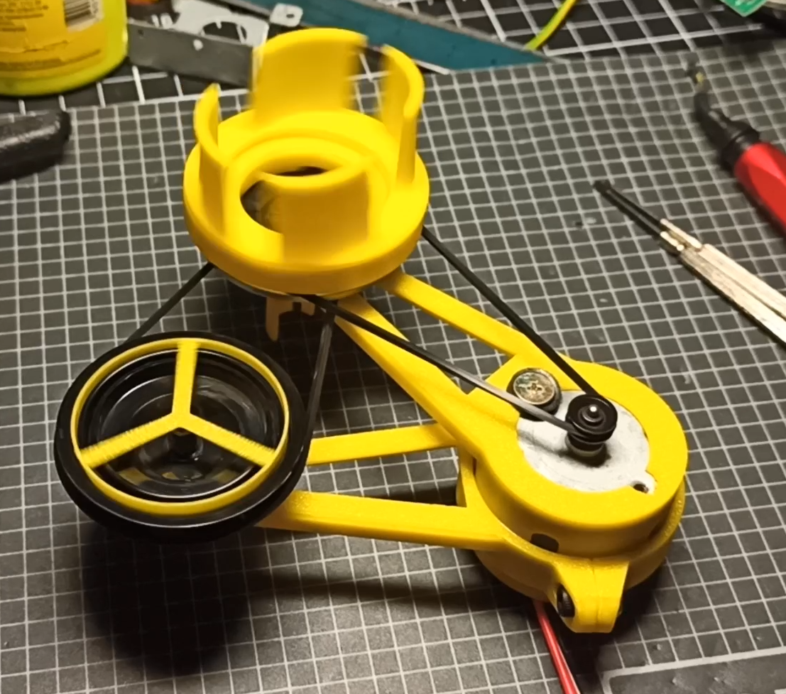 Разбираю, выкидываю всё лишнее, оставляю моторчик, шкив и пассик. От 5В моторчик работает. Живой. Регулятором напряжения Liludin LM2596, обороты регулируются, прекрасно. Продолжим.