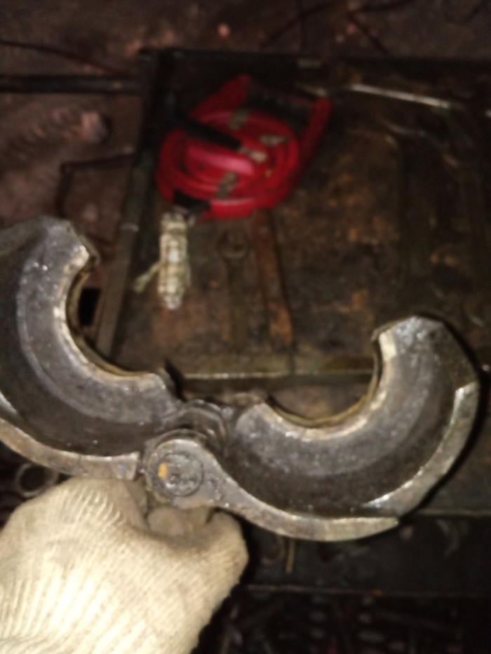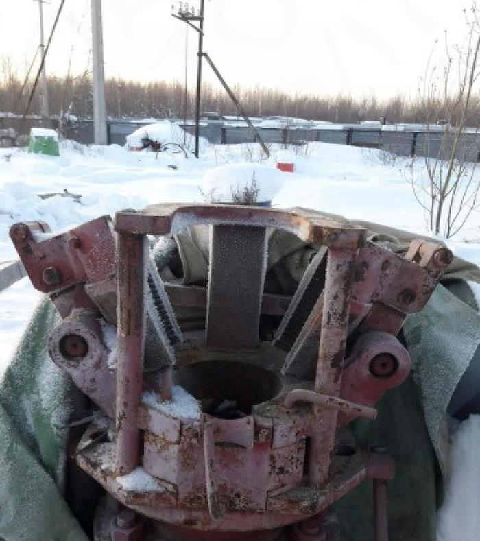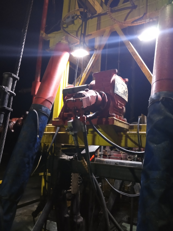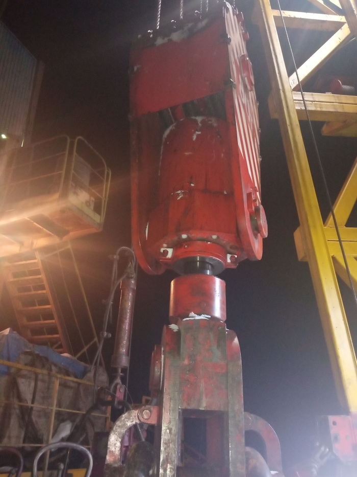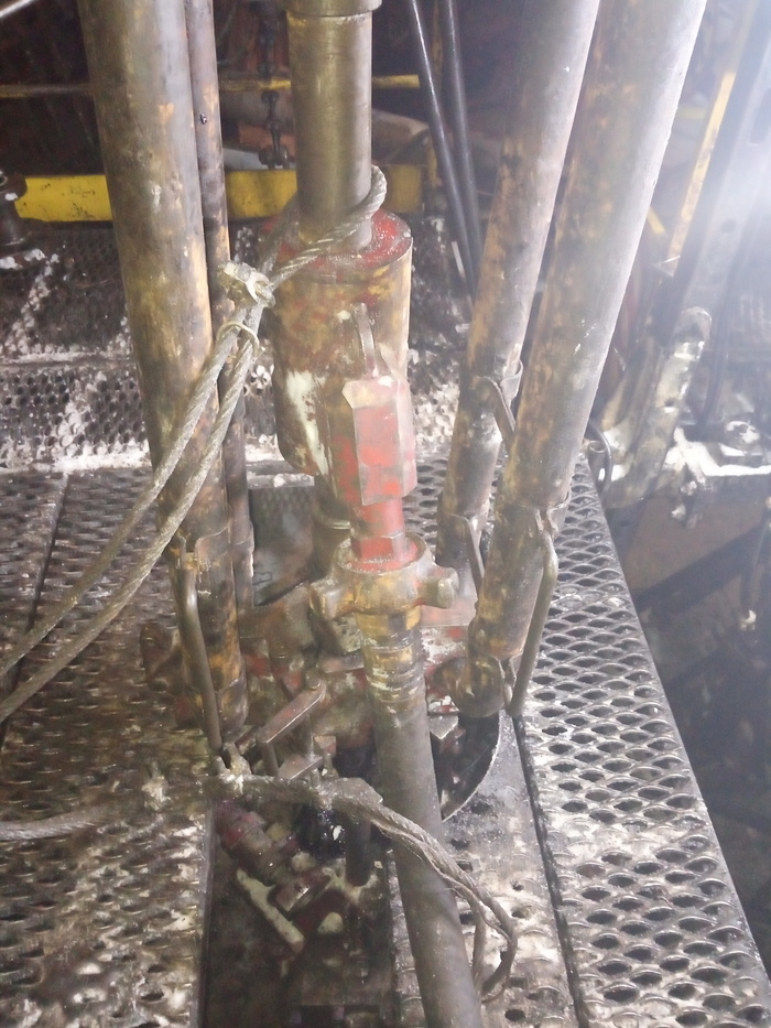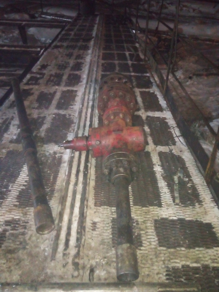 Элеватор КМ, одетый на трубу перед срывом стингера. Виден вертлюг с подбитым РВД