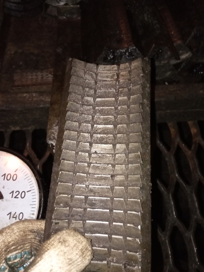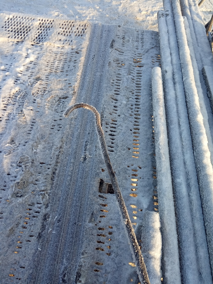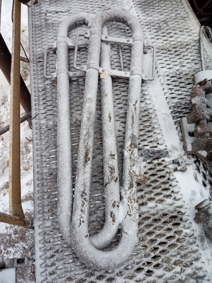 Трубы лежат рядами, по регламенту число рядов не должно превышать шесть. Верхние ряды легко накатывать и сбрасывать, руками, ногой, или с помощью такого крючка