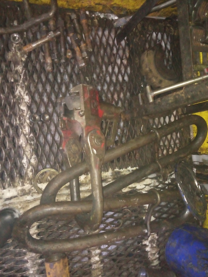 Управление этой конструкцией ведется с рабочего места бурильщика, у него есть ручка управления механического тормоза - палка. Если кто читал анекдот про обезьяну и палку - вот про нее и речь.