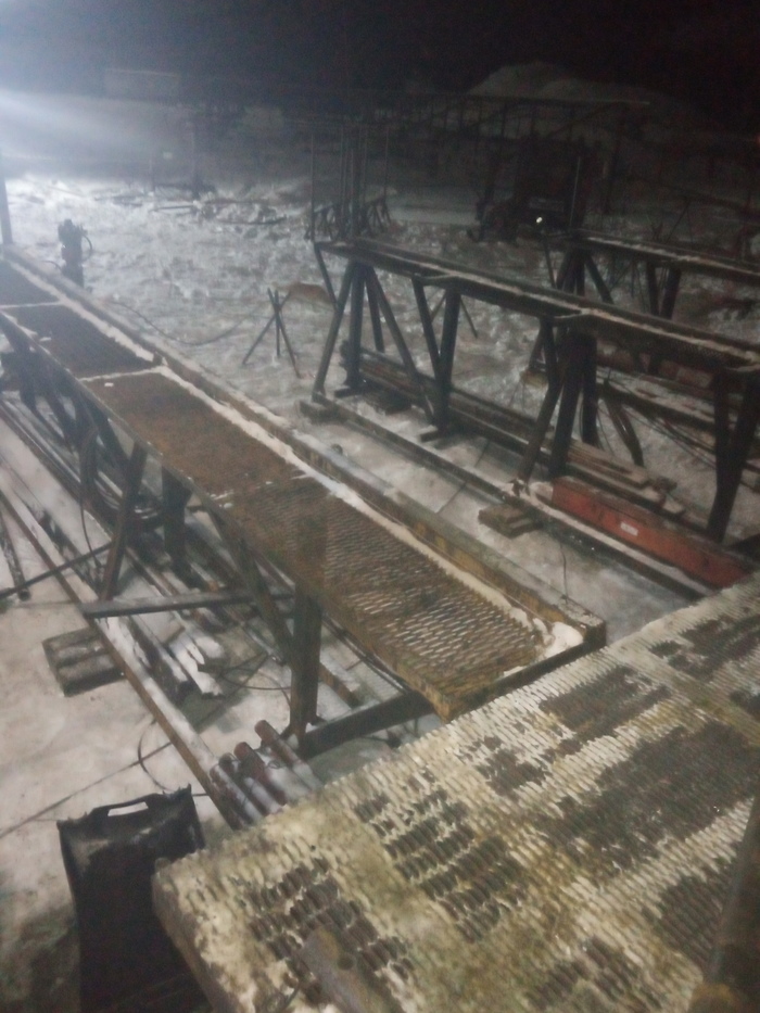 Приемный мост и стеллажи без труб. К сведению, для общего развития, на мостике лежит фрак арматура для гидроразрыва пласта, красным покрашена