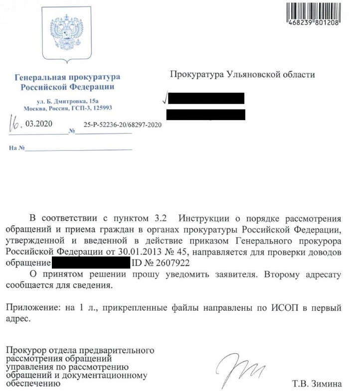 А генеральная прокуратура без собственной проверки спустила всё обратно на областной уровень, который мы уже проходили:
