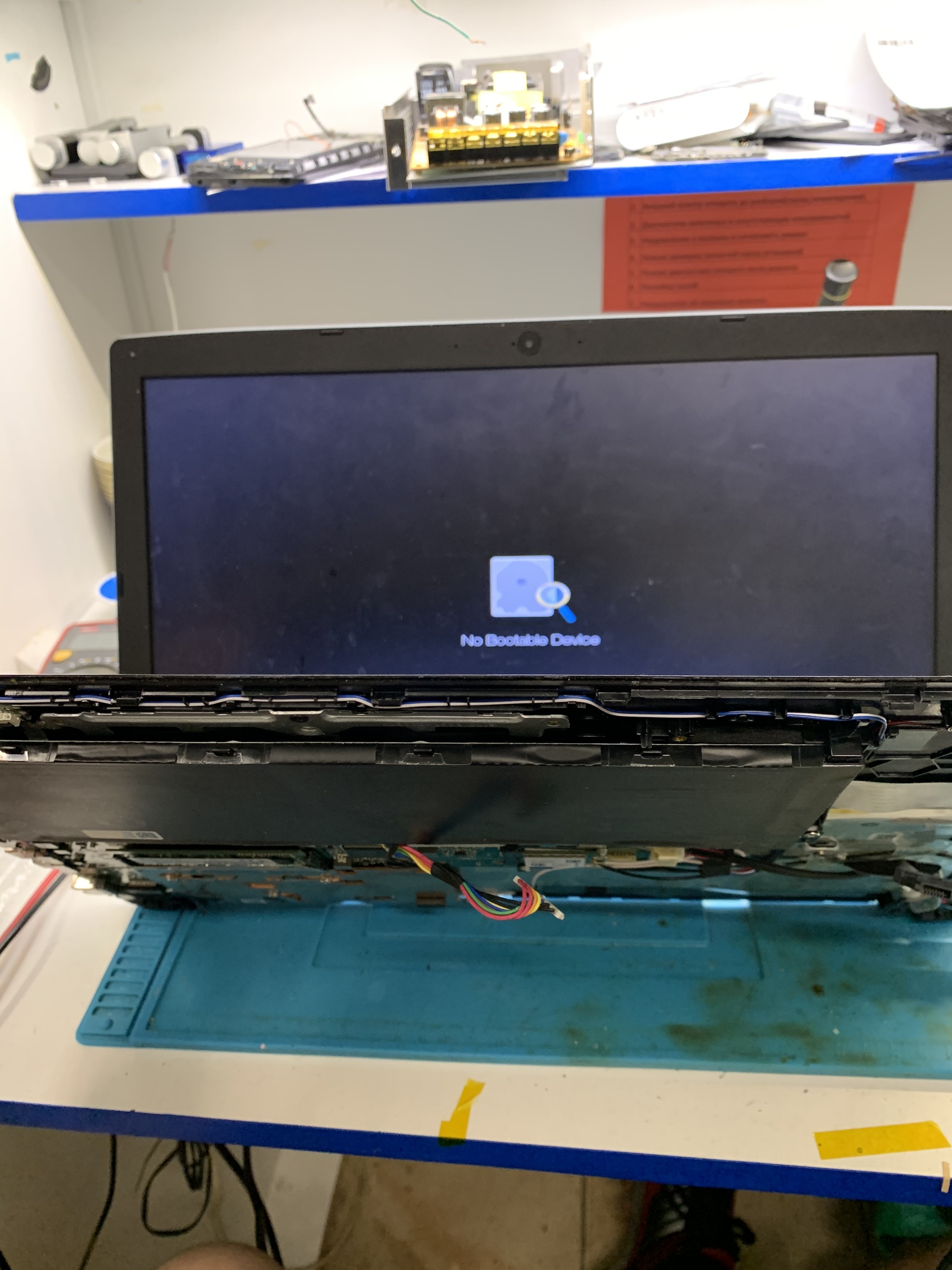 От кнопки включения не захотел заводиться. Пришлось замыкать контакт на разъеме клавиатуры что бы материнская плата стартанула. И вот что у нас вышло: