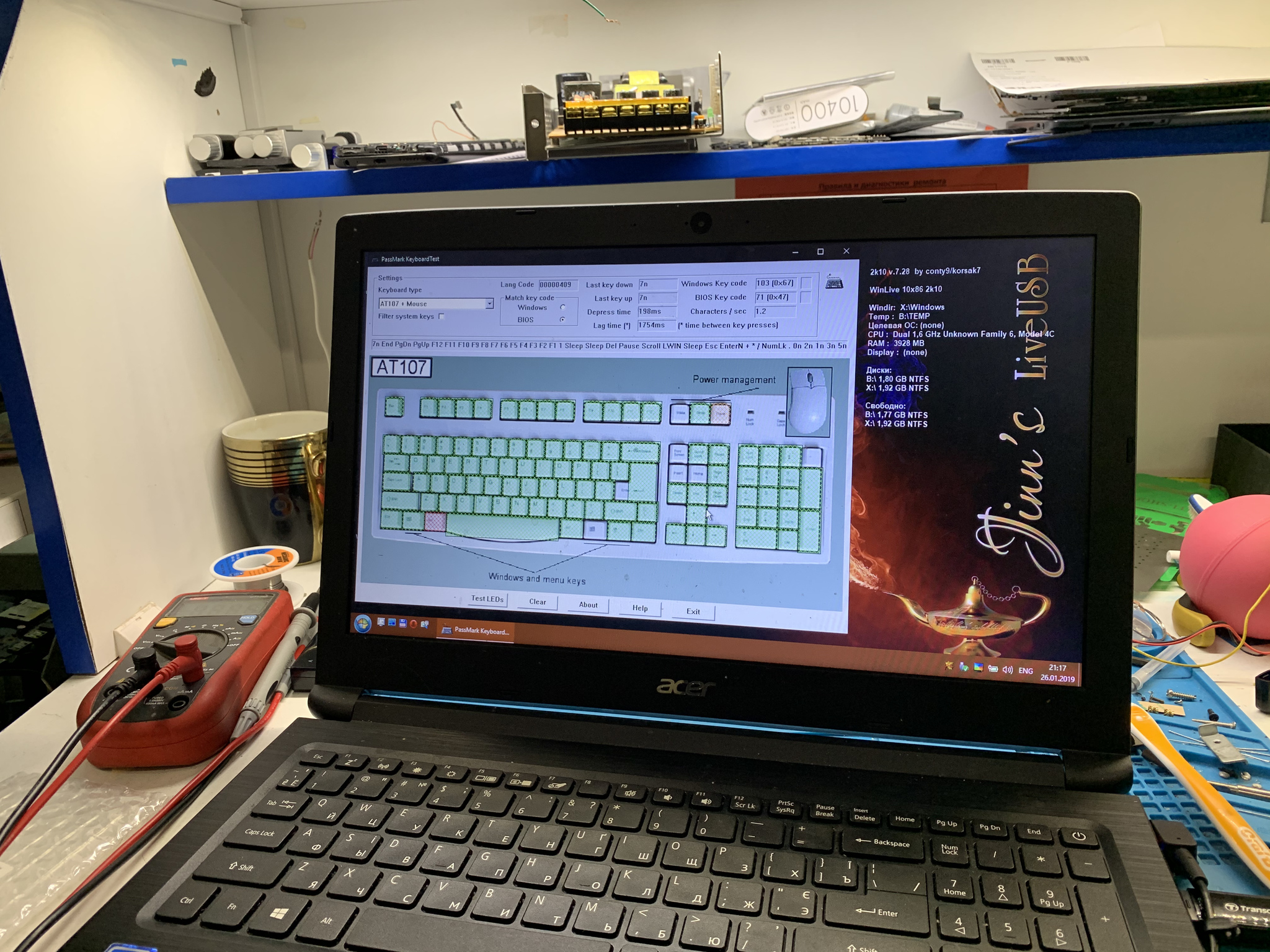 Клавиатура полностью работает. Но придется менять из-за кнопки включения. Она видимо внутри окислилась. Потому что на ней 3.3в постоянные.