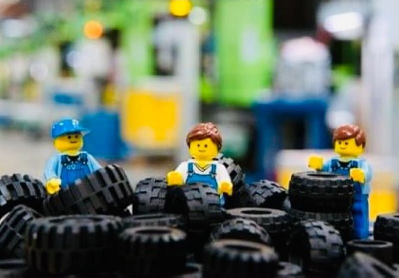 Lego в качестве сырья (до 1/3) для игрушечных шин используются отходы промышленных материалов.