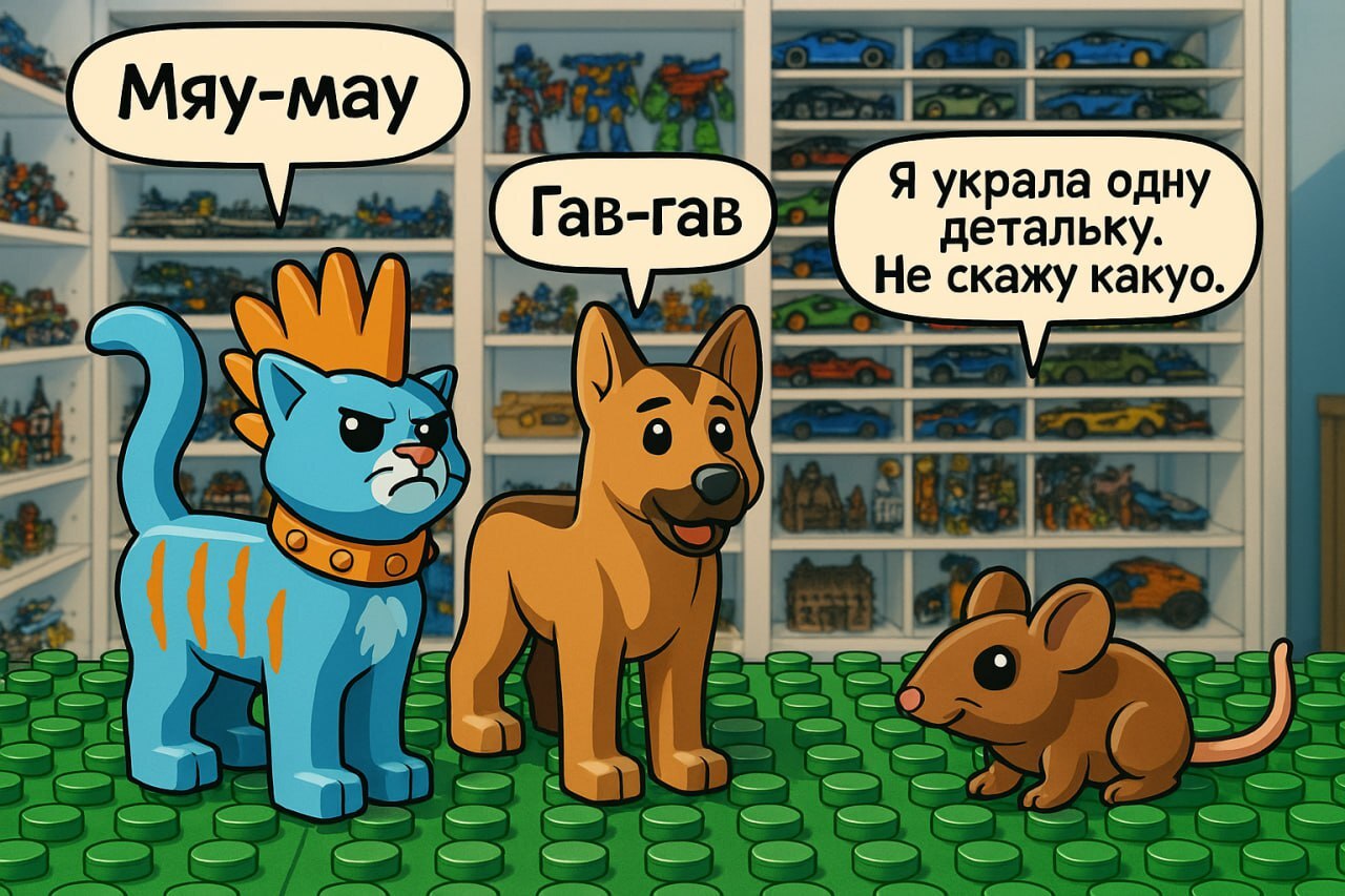 Mike246 LEGO Лего мем 8 месяцев назад Кошечка говорит мяу-мяу, собачка говорит гав-гав, а мышь - всегда мышь Подписывайтесь на канал t.me/man_lego [моё] LEGO Конструктор Мемы Моделизм Коллекция 3 1 1 1 Ещё 0