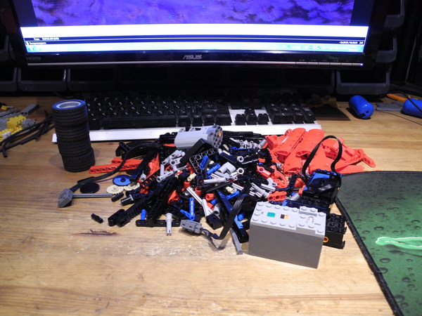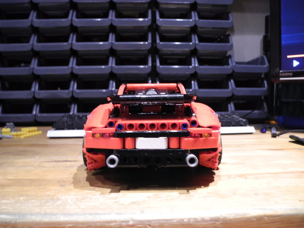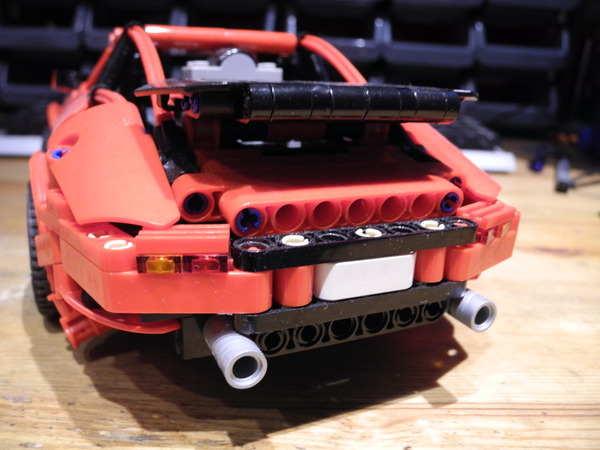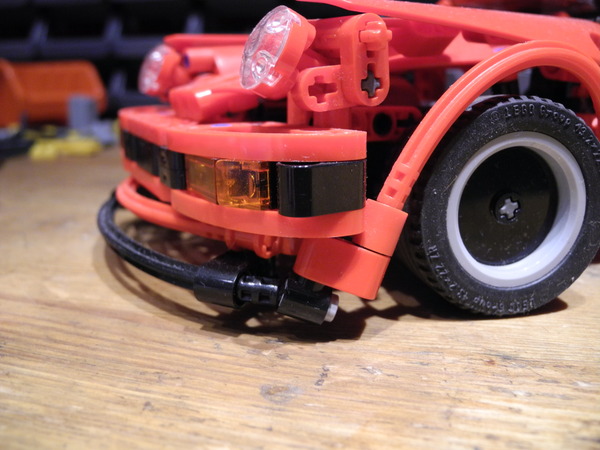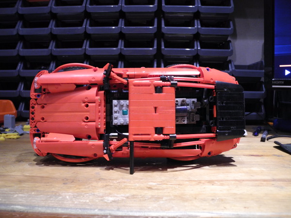 Модель оснащена дистанционным управлением 1 серво мотор на поворот колёс и 2 мотора от поездов для движения, около 25см в длину, состоит из ~450 деталей.