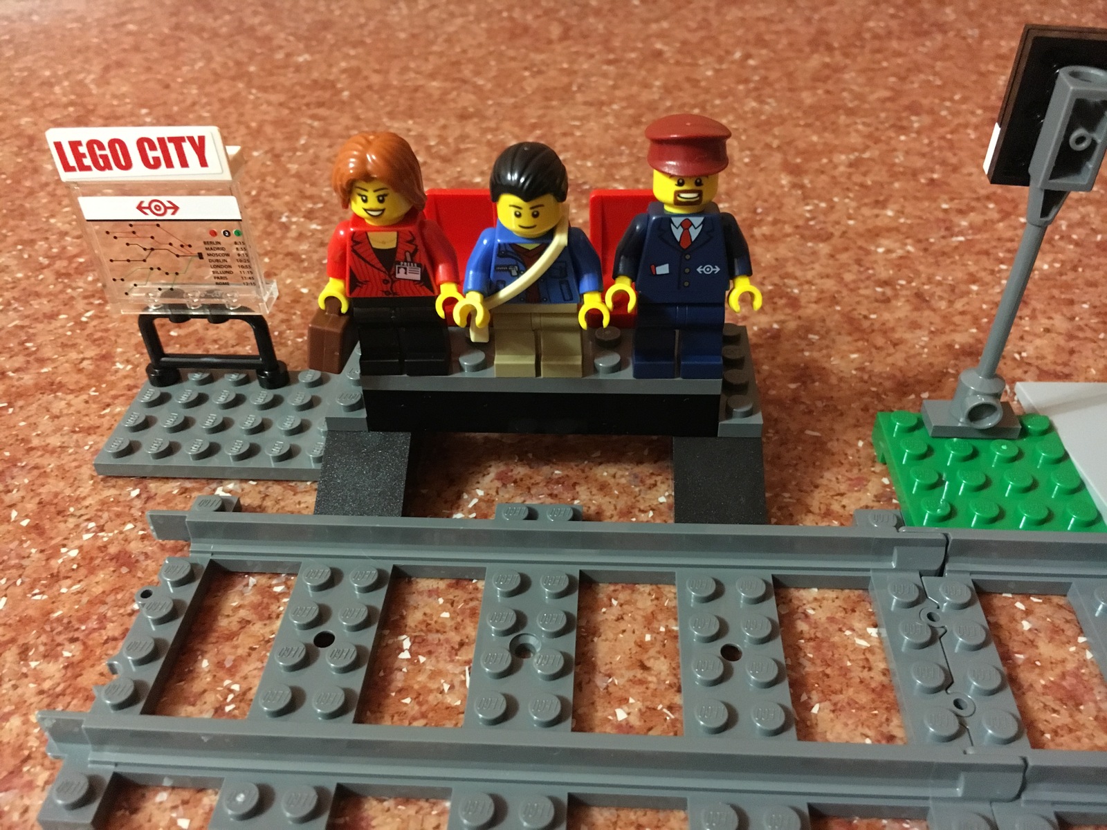 В набор входят 3 минифигурки: машинист поезда, путешественник и велосипедист