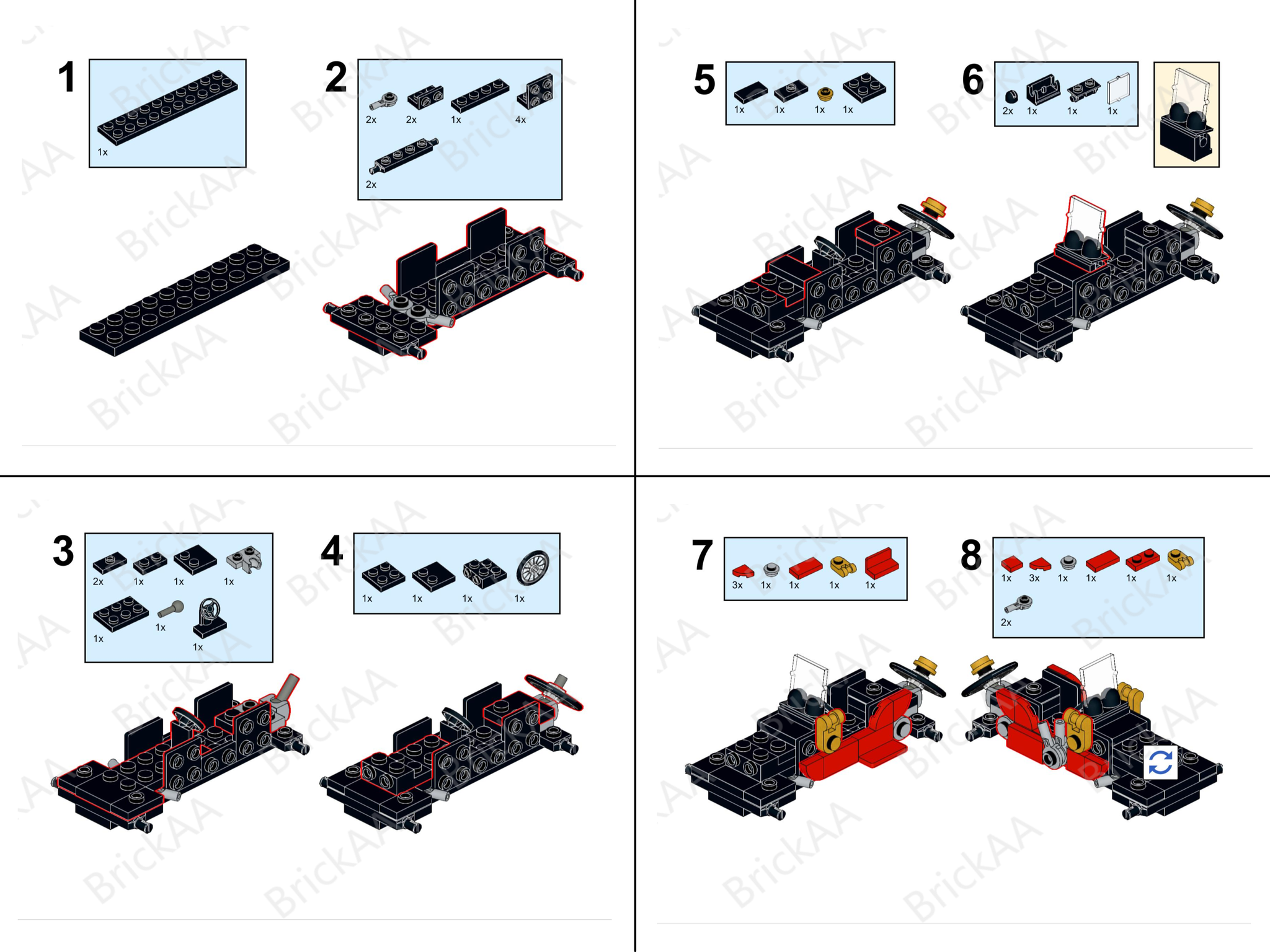 Как обычно ссылка на страничку с моделью и PDF инструкцией https://rebrickable.com/mocs/MOC-91895/BrickAA/old-roadster