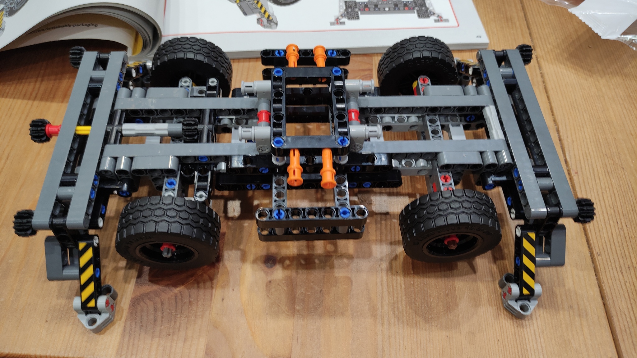 На первом шаге собираем шасси. Шасси имеет четыре опоры и рулевое управление одной осью. Сборка состоит из двух этапов. Собираем отдельно переднюю и заднюю часть. Они отличаются только рулевым управлением.