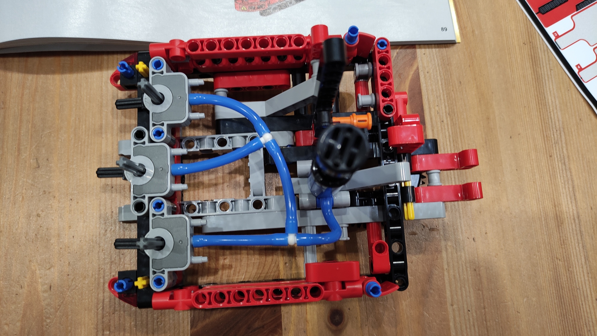 На втором шаге собирается кабина и начинаем устанавливать пневматику. Кабина с насосом и переключателями.
