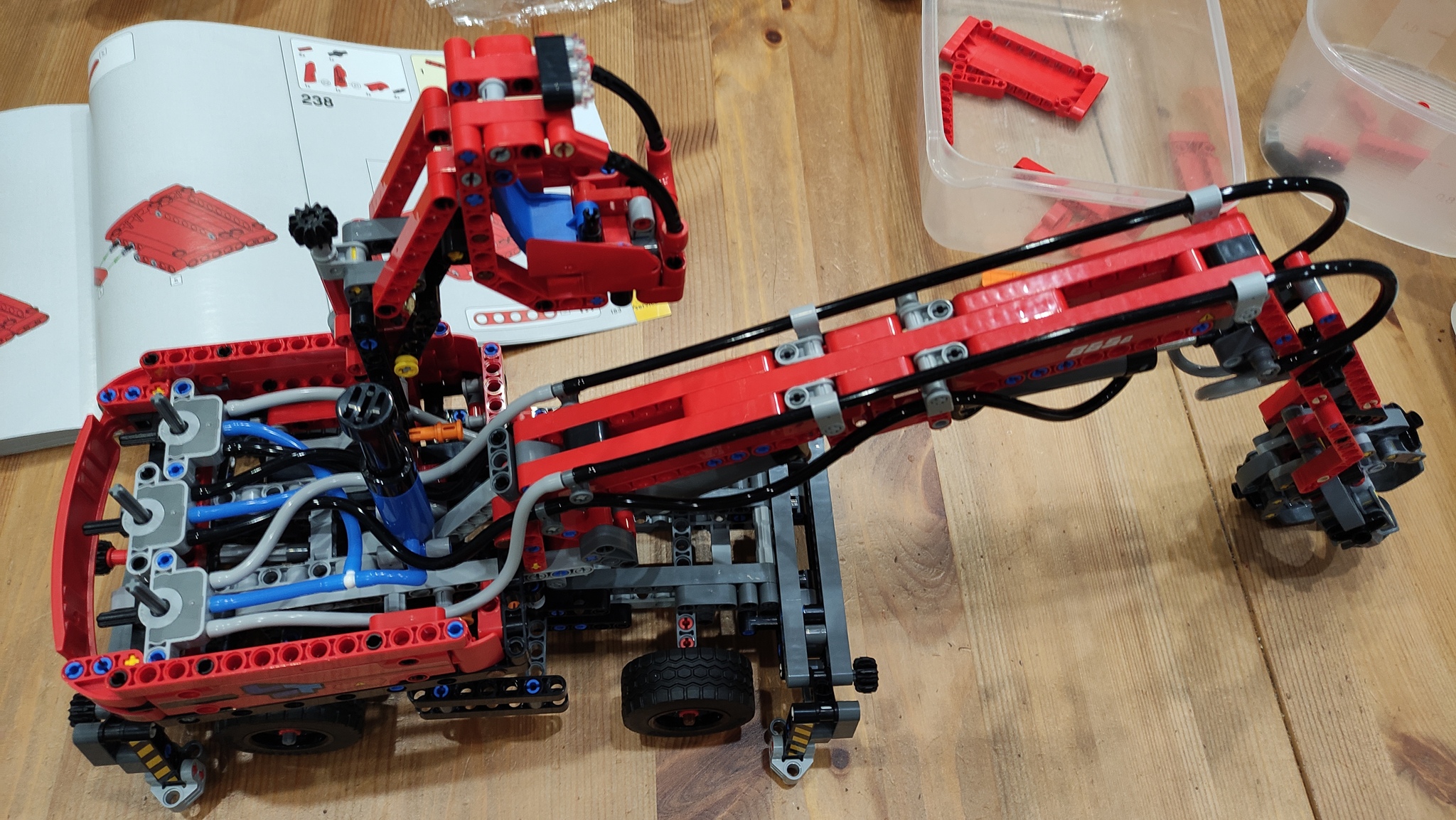 На последнем шаге устанавливаем стрелу и клешни, плюс закрываем корпус. Получаем мешанину из трубок.