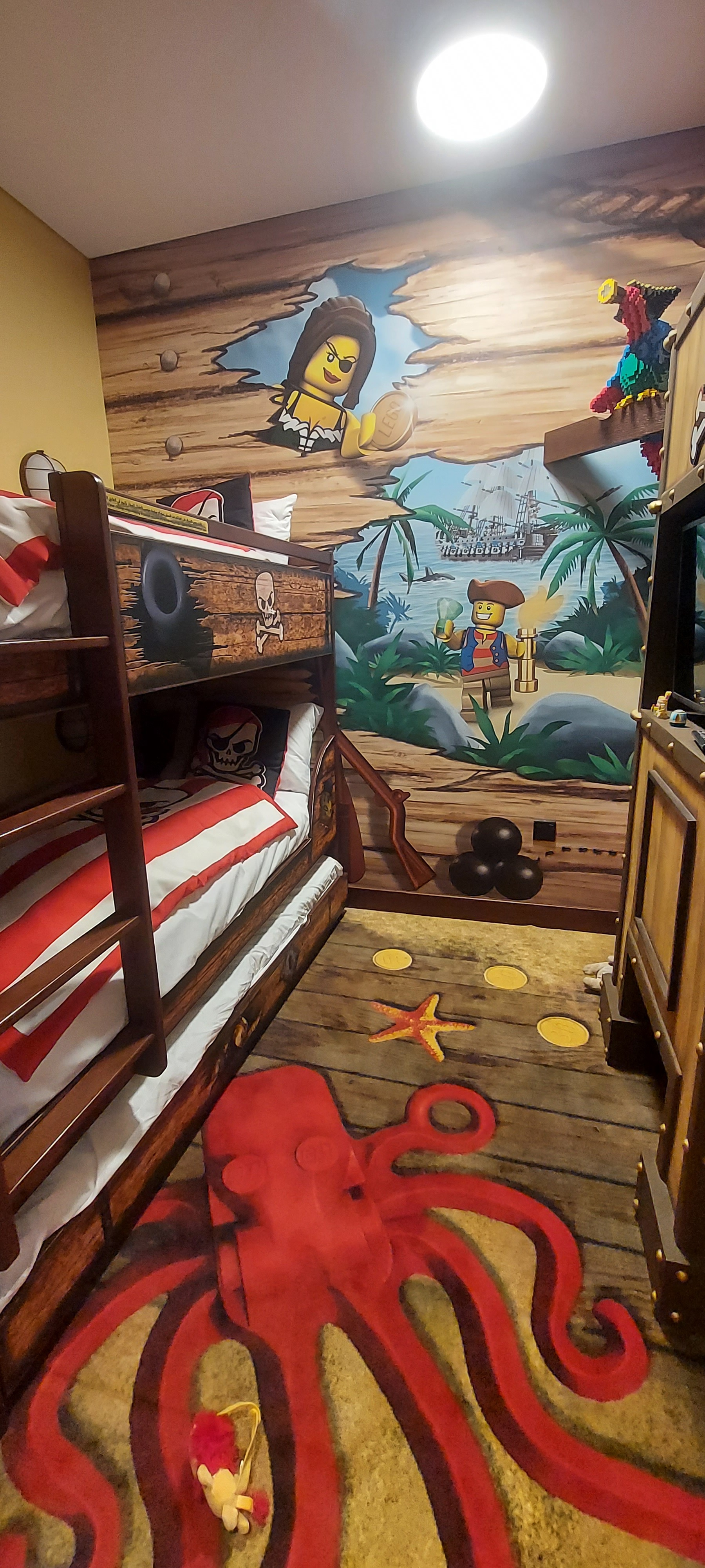 Для детей в номере приготовлен квест (найти и посчитать разные предметы номера) - каждый ответ это часть кода сейфа, внутри - маленьгие лего-наборы каждому.