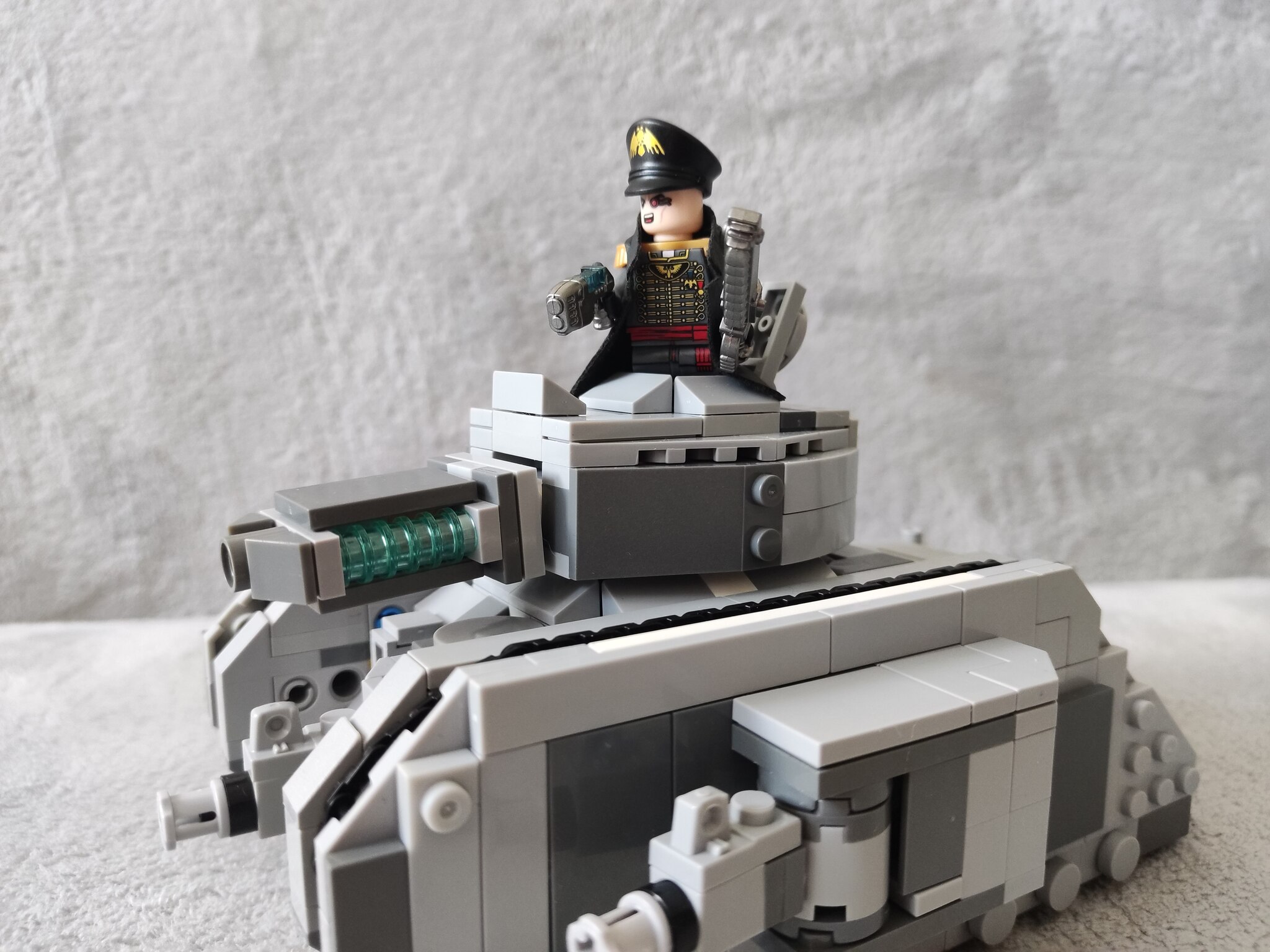 В комментариях меня упрекнули пренебрежением другим шикарным образцом инженерной мысли Империума. Но никто не забыт, ничто не забыто. Основной боевой танк astra militarum к вашим услугам.