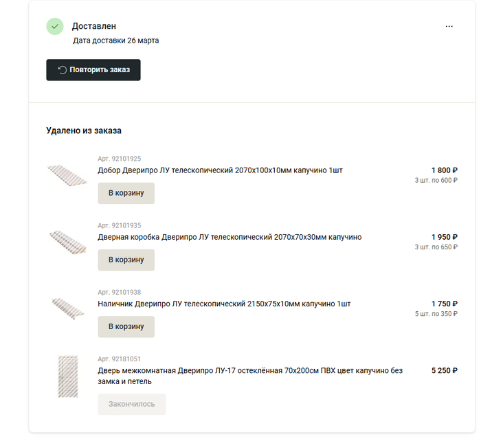 забрали, вернули всё, захожу на сайт, а двери больше нет в наличии.