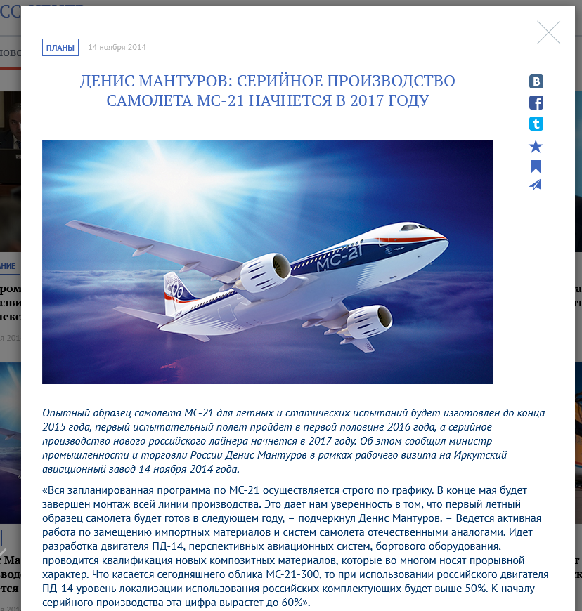 А за наше авиастроение не переживай. Прям щас по полста самолетов в год делают - при всех санкциях))))