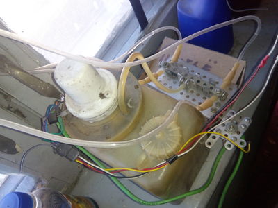 Вода из погреба(подземные воды) благодаря фильтру и насосу поступает в бочку на бане, которая предназначена для помыва рук, душа и полива. Оттуда поступает в отдельный поливочный канал, куда вставлены капельницы. Работает все прекрасно, но требует юстирования(настройки, калибровки).