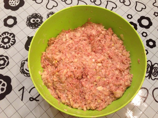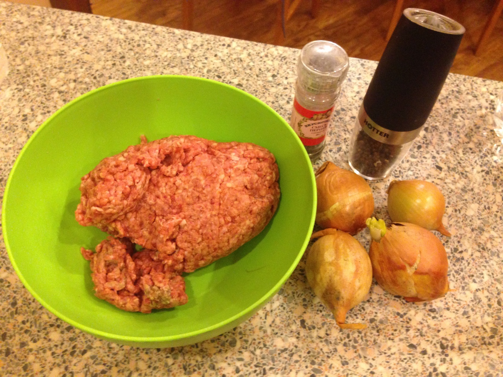Фарш 1 кг.: 70% говядина, 30% жирненькая свинина – накрутили прямо при мне в магазине.