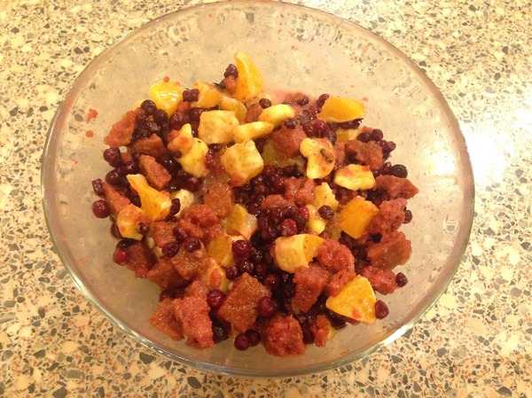 И для того, чтобы все это дело загустить и покрошил коржи для торта, которые оставались с готовки жены. Думаю можно загустить мукой или манкой.