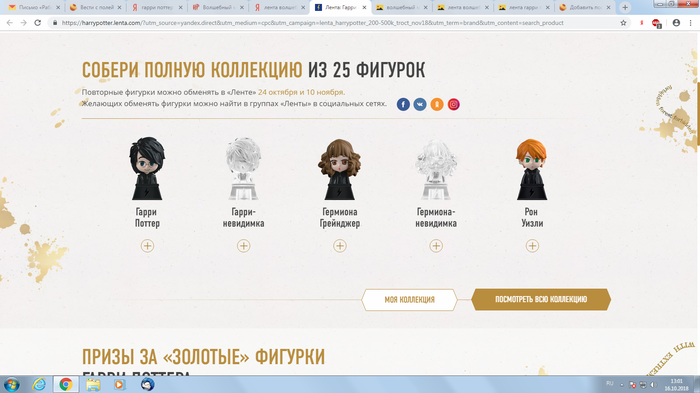 Вчера я съездила в нашу Ленту. Там сейчас акция и за покупки дают статуэтки с героями "Гарри Поттера".