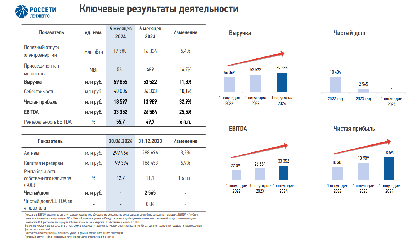 Причина роста выручки в целом интуитивно понятна каждому — в РФ активно растёт ВВП (+4,7% за I полугодие 2024). Рост ВВП — это, в том числе, рост производства, для производства нужна энергия. Ленэнерго поставляет электроэнергию.