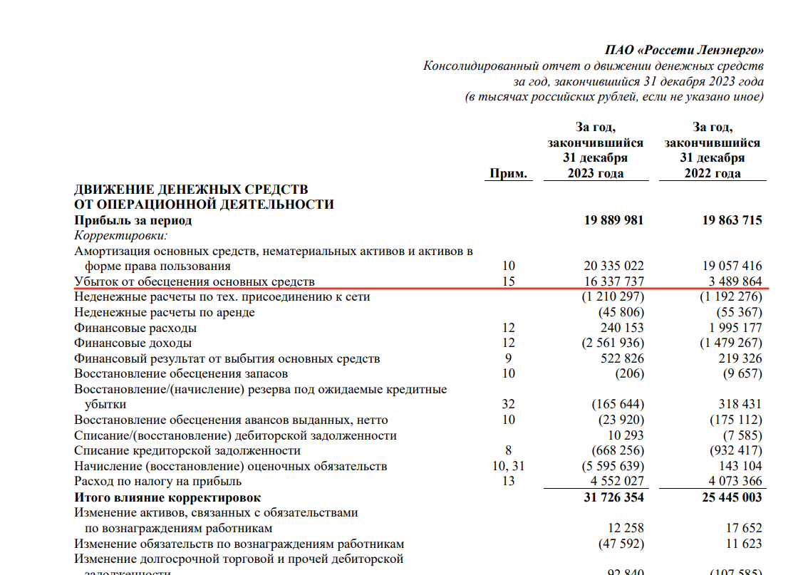 Основной риск — это разовое списания и обесценение активов. История для IV квартала регулярная. Обесценение активов снижает чистую прибыль. Для справки: за 2023 обесценение активов составило 16,3 млрд руб. (рис 4). Т.е. подобное обесценение активов может сильно уменьшить расчётную базу для дивидендов (для сравнения чистая прибыль за I полугодие 18,6 млрд руб).
