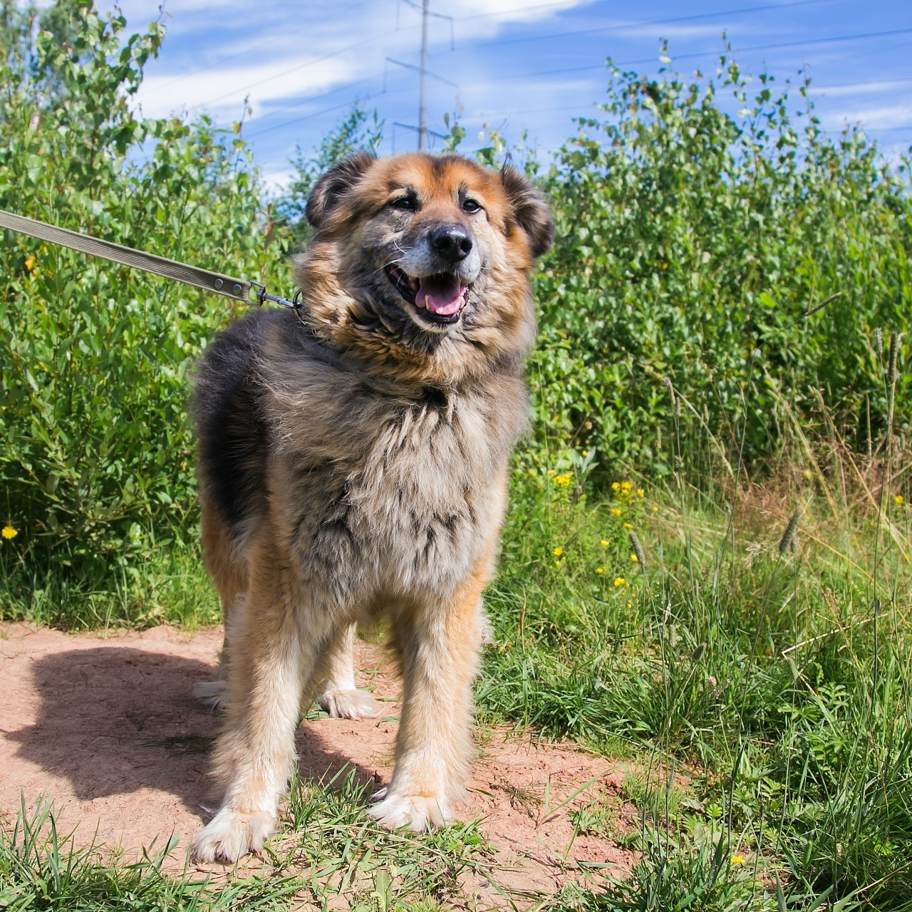 Лео среднего возраста, отлично гуляет на поводке, с собаками дружелюбен.