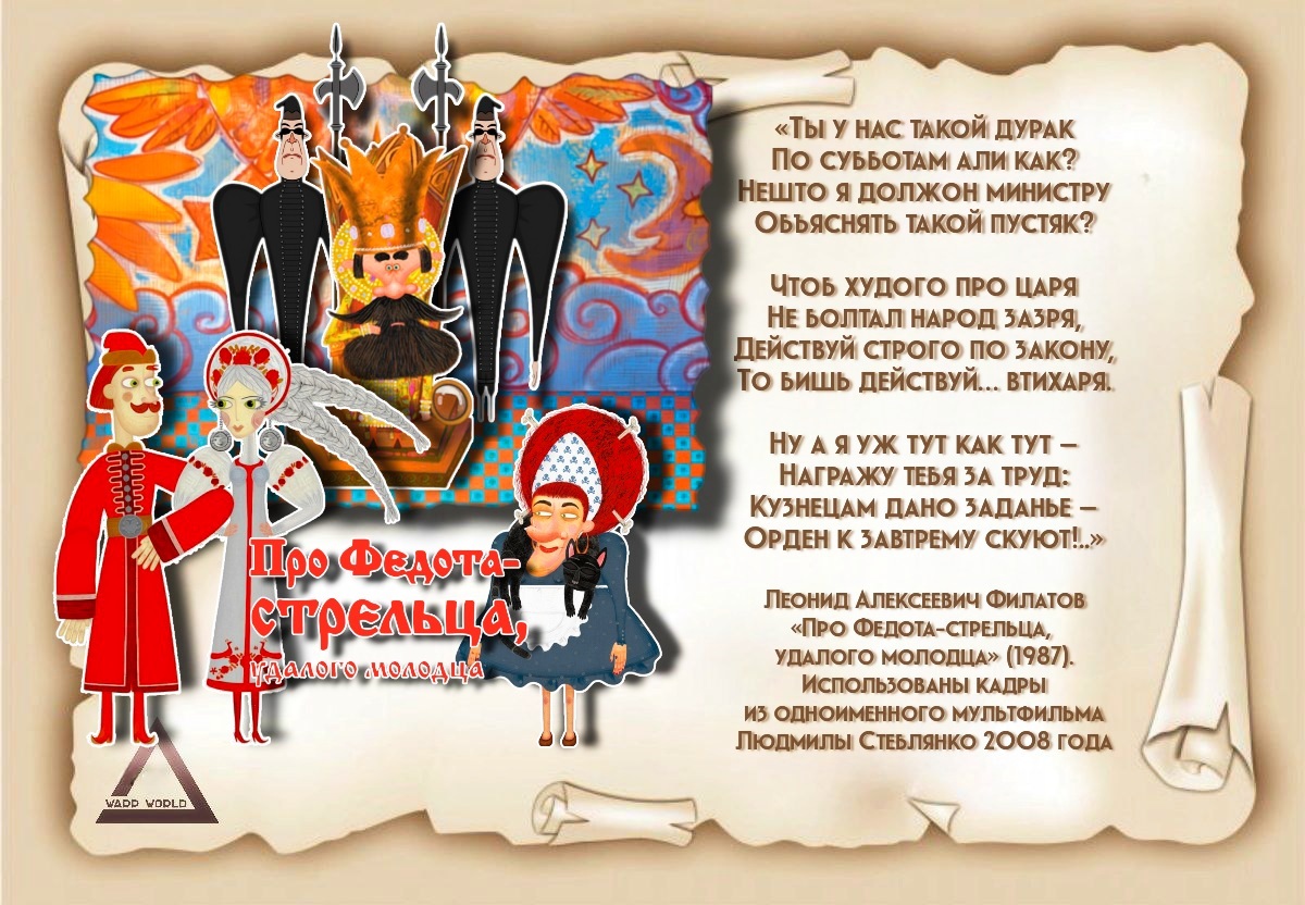 2 WarpWorld Леонид Филатов «Про Федота-стрельца, удалого молодца». Цитата из книги Серия Цитата из книги 3 месяца назад [моё] Цитаты Книги Филатов Про Федота стрельца Сказка для взрослых 1 Ещё 0