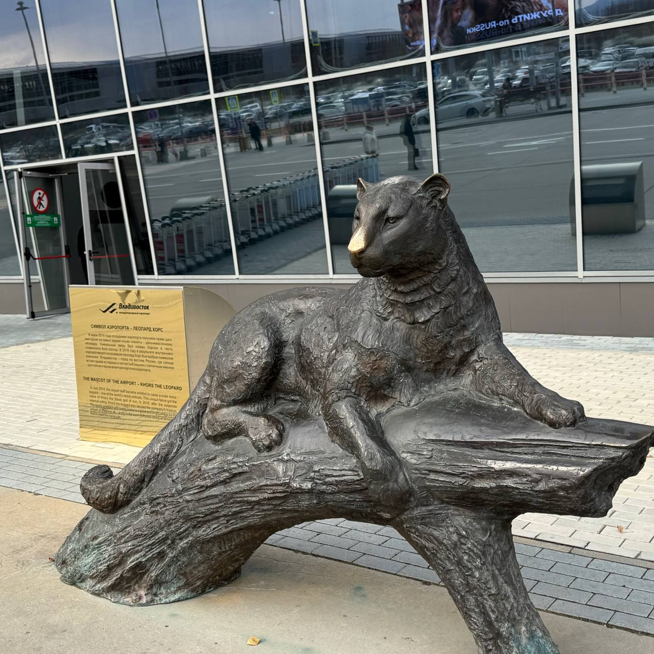 Бронзовая статуя дальневосточного леопарда приветствует и провожает гостей главной воздушной гавани Приморского края