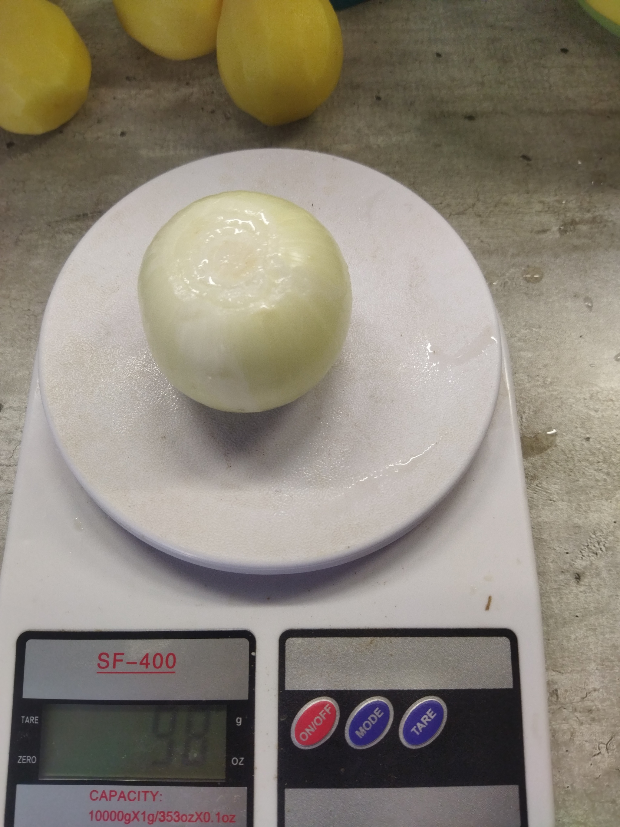 Далее, пока всё варится, очищаем головку лука 90-110 г.